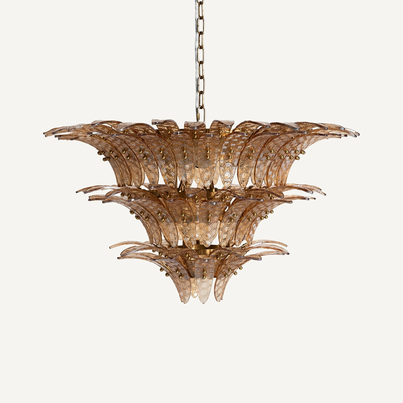 Подвесной светильник Olgiasca от VICAL выделяется своей ретро-элегантностью и игрой теплых прозрачных оттенков. Изготовленный из коричневого стекла и железа медного цвета, он добавляет визуальную глубину и создает изысканную атмосферу. Ширина: 85 см, Глубина: 85 см, Высота: 47 см