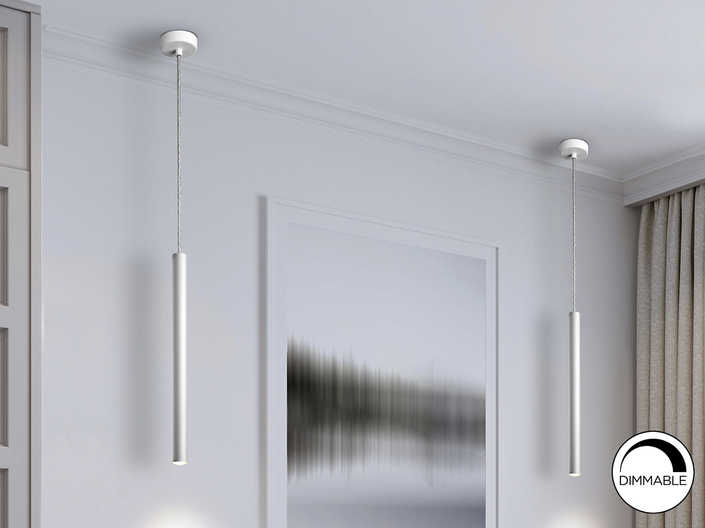 Подвесной светильник с 1 лампой LED, из металла с матовым белым покрытием, опаловый акриловый рассеиватель, 5W LED, 450 Lm, 3000 K. ДИММИРУЕМЫЙ.