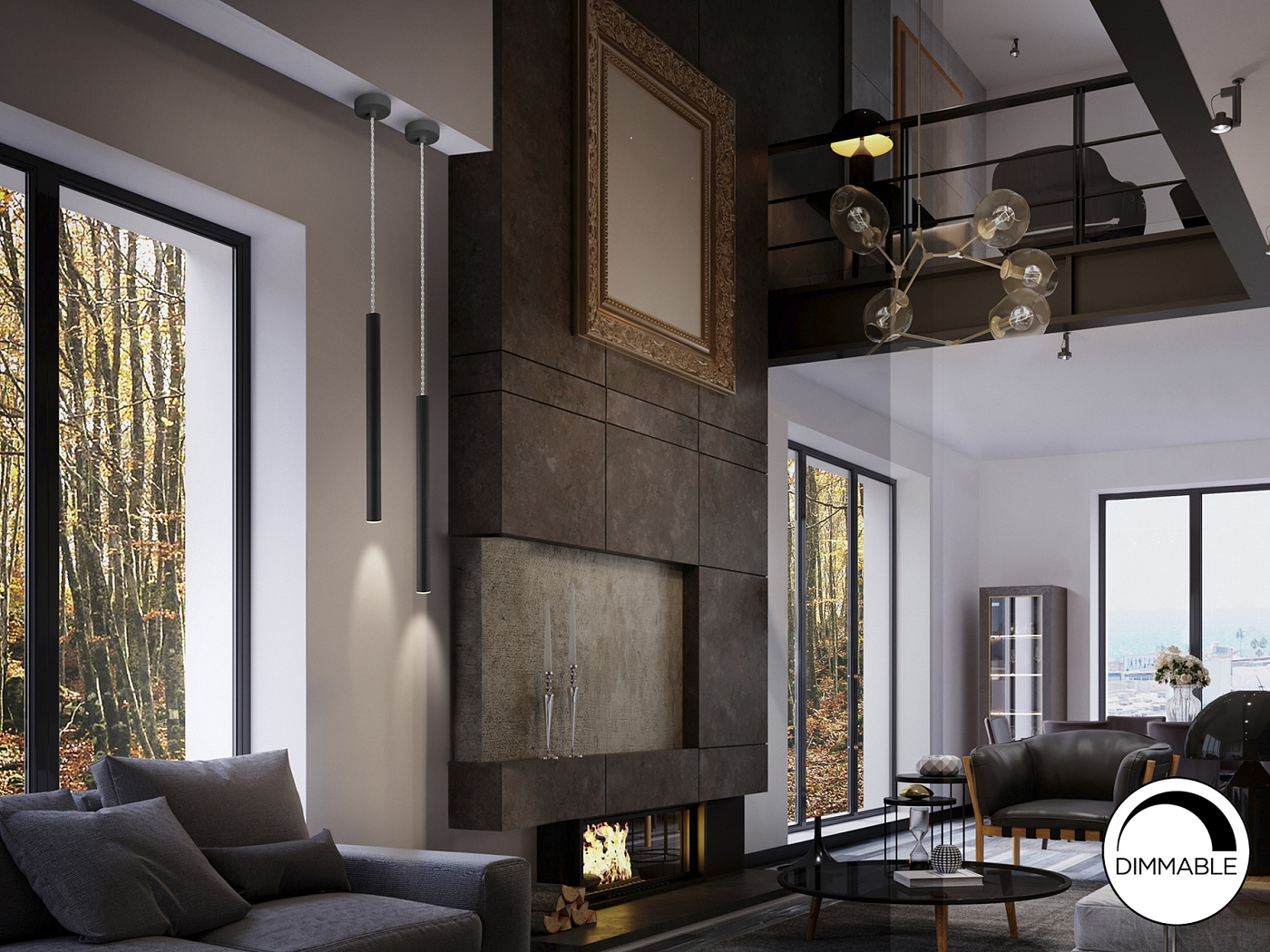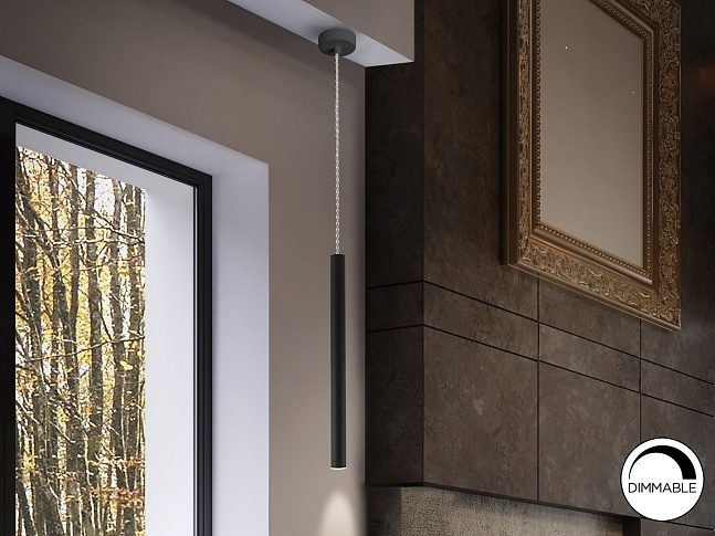 Подвесной светильник LED с 1 лампой из металла с чёрным матовым покрытием. Акриловый рассеиватель опaлового цвета. 5W LED, 450 Lm, 3000 K. ДИММИРУЕМЫЙ.