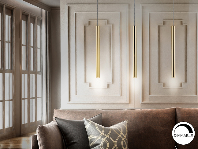 Подвесной светильник LED с 1 лампой из металла с покрытием "блестящее золото". Акриловый рассеиватель опaлового цвета. 5W LED, 450 Lm, 3000 K. Диммируемый.