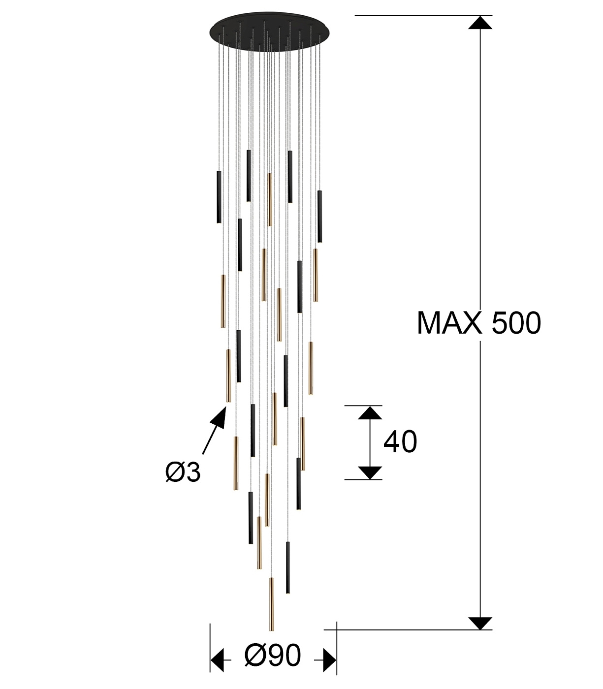 Подвесной светильник Varas 25L черно-золотой DIM 500 см