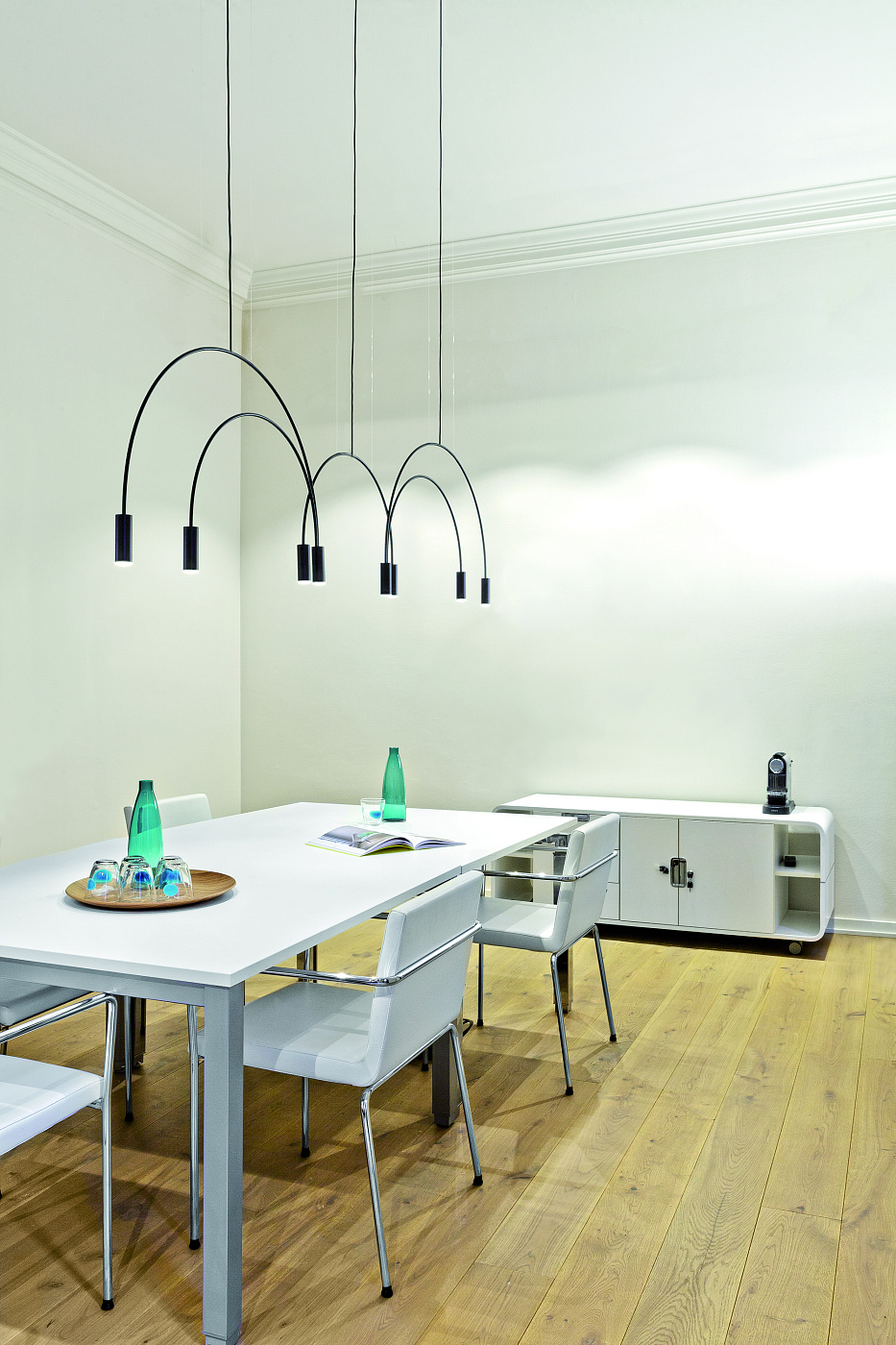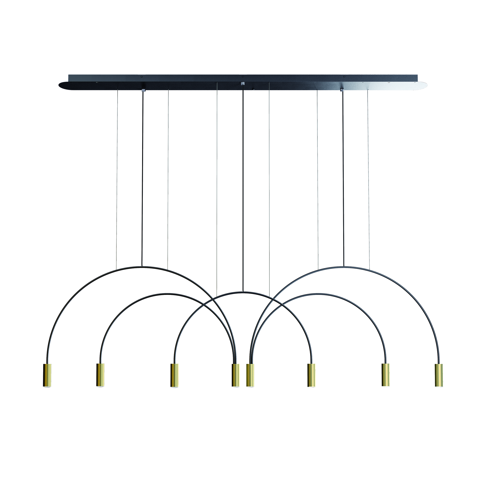 Подвесной светильник с металлическим корпусом, встроенным диммируемым светодиодом, цилиндрическими алюминиевыми головками и линзовыми рассеивателями из акрила (ПММА). Регулируемая высота и индивидуальный навес, подходящий для создания композиций. Идеально подходит для гостиной, столовой, кухонного острова, спальни, бара, ресторана, гостиницы и розничного магазина.