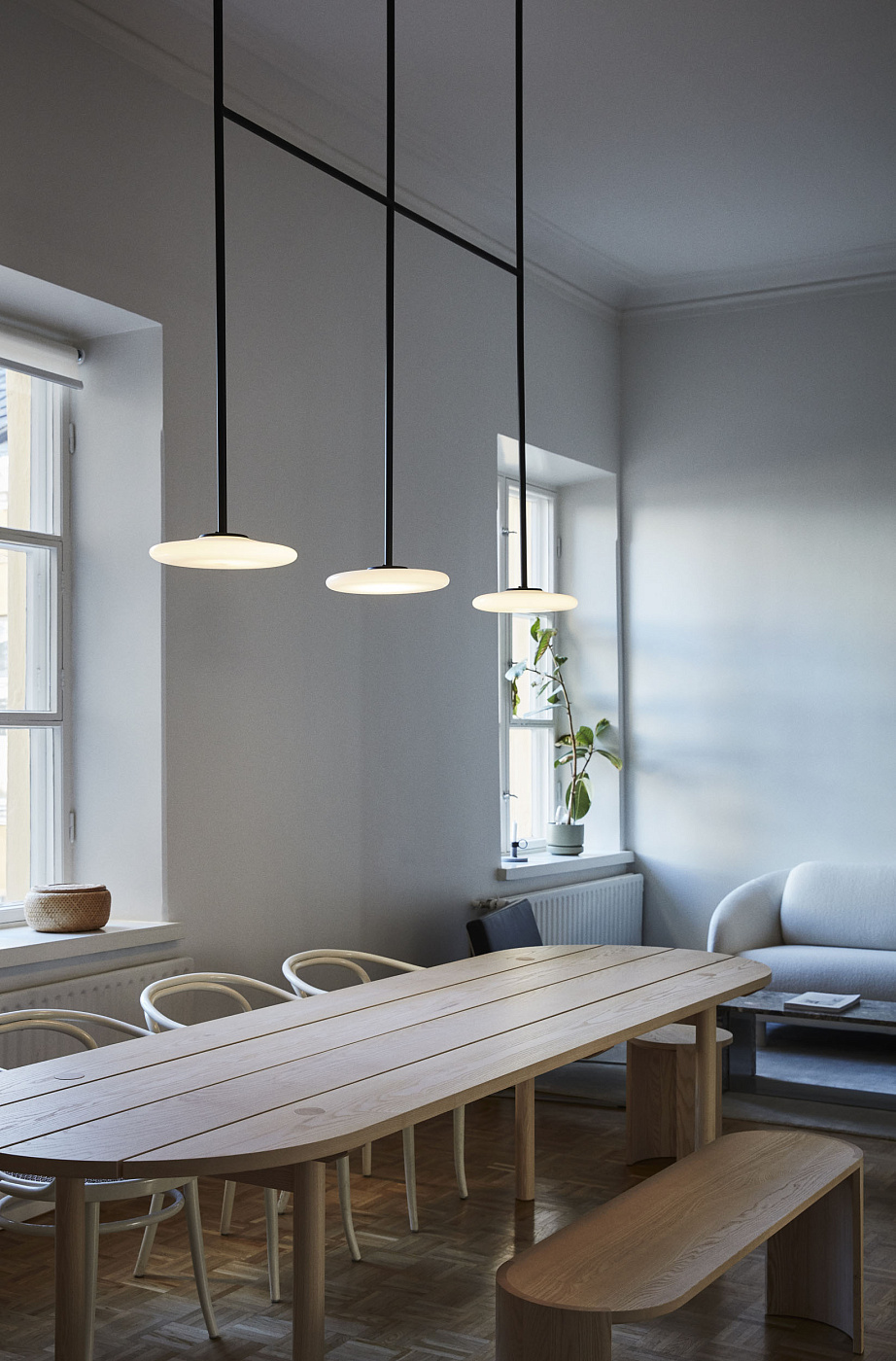 Безмятежные формы Иханы очерчивают силуэт света. Эта система освещения состоит из нескольких рассеивателей из опалового дутого стекла, которые приятны для глаз, кажутся пластичными и контрастируют с прочностью металлической конструкции, которая определяет ее форму и крепит к потолку. Стремясь обеспечить рассеянный свет для любого классического или современного проекта дизайна интерьера, эта коллекция может быть использована для создания световых композиций. Это стало возможным благодаря его структуре, которая может быть расширена и включать 14 рассеивателей, подключенных к одной точке света. Он доступен в различных размерах для освещения помещений с высокими потолками. Кроме того, Ihana оснащен технологией от тусклого до теплого, которая позволяет регулировать не только интенсивность света, но и его цветовую температуру, которая может варьироваться от теплого белого (3000 К) до ультра теплого белого, имитирующего свет свечи (1800 К). Часто дизайн рождается по необходимости. Ихана, что в переводе с финского означает “изысканная”, - одна из них. Его создатель, архитектор Джоанна Лааджисто, перенесла свою студию в здание 19 века в Хельсинки и не смогла найти ни одной лампы, которая соответствовала бы ее новому офису. В поисках красоты света она создала скульптурную лампу, определяемую ее чистыми, почти графическими формами и балансом между жесткостью и хрупкостью. Ihana - это синтез контрастов, сочетающий контрастные цвета, черную металлическую структуру и белые диффузоры, а также нюансы старого и нового. Современный и неподвластный времени дизайн, созданный его создателем, чтобы сохраняться с течением времени и стать частью тех историй, в которых никто не помнит, в каком году он был разработан.