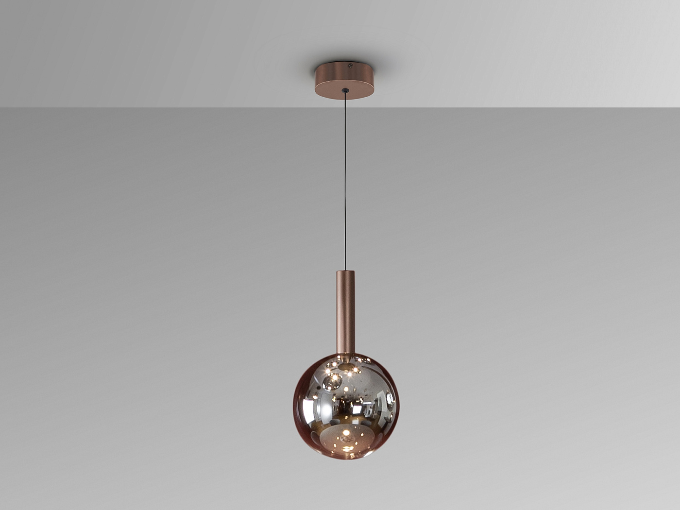 Светильник из металла с покрытием из тёмной бронзы. Абажур из размытого дымчатого стекла. Регулируемая высота. Светодиод мощностью 5,60 Вт, цветовой температурой 3000 К, 600 лм. · Этот светильник оснащен GRAVITY TOGGLES для улучшения фиксации на потолке.
