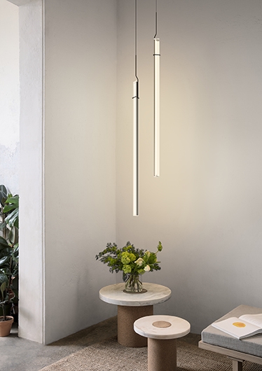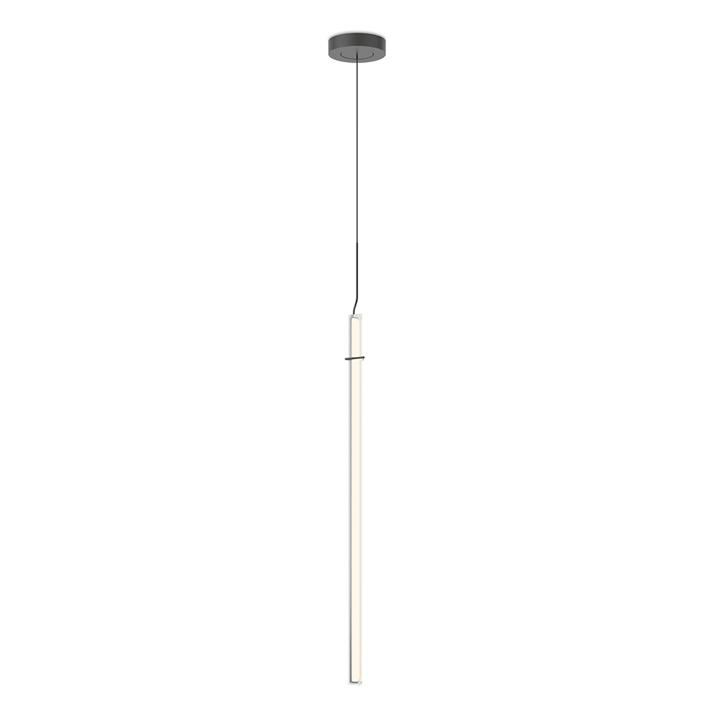Подвесной светильник. Обеспечение окружающего или непрямого света через вертикальный диффузор из метакрилата. Диффузор поддерживается конструкцией из высококачественной стали. Комбинируя несколько элементов разной высоты, можно добиться более динамичного эффекта в больших помещениях.