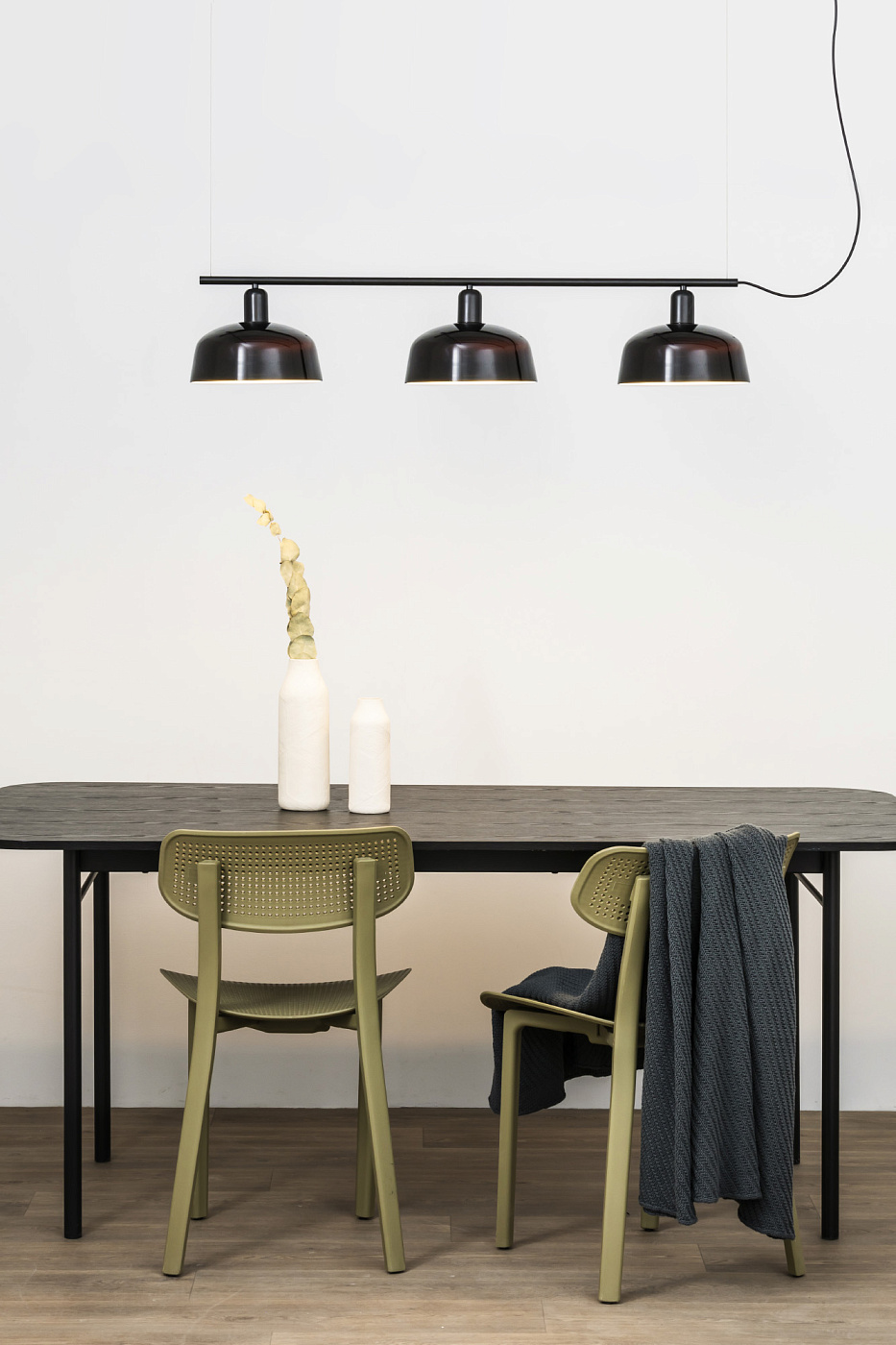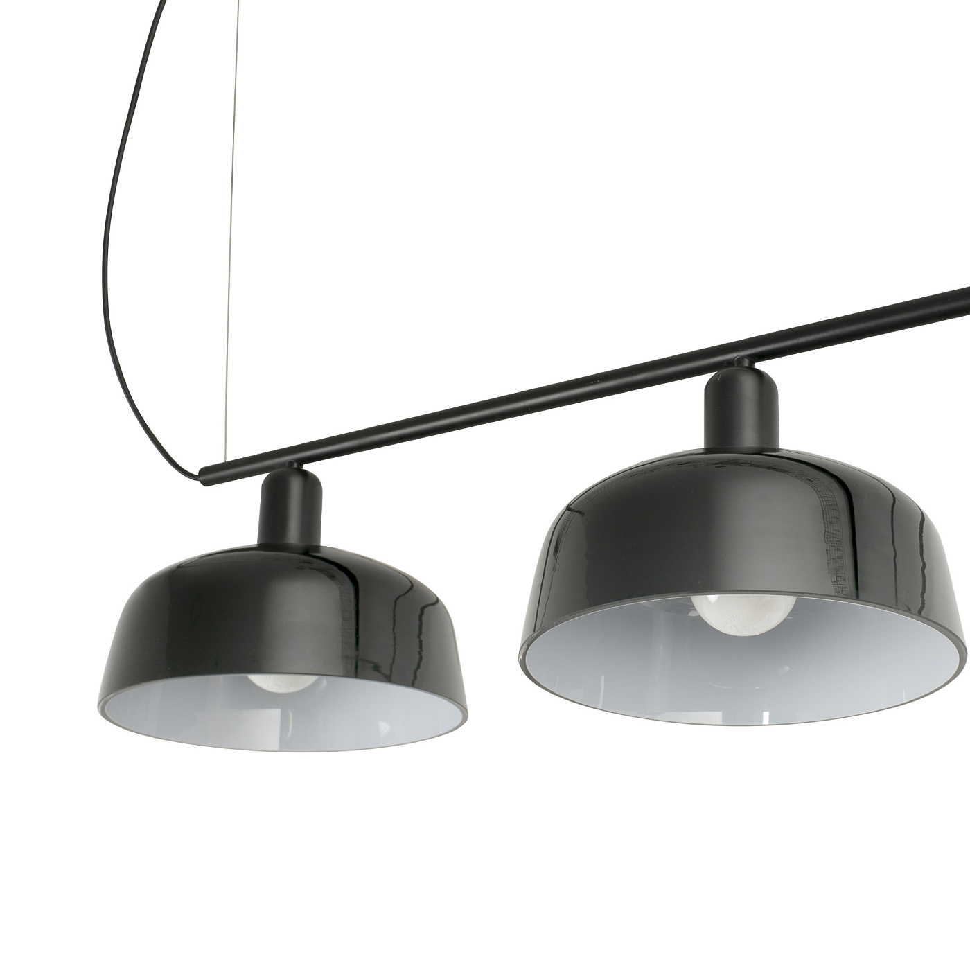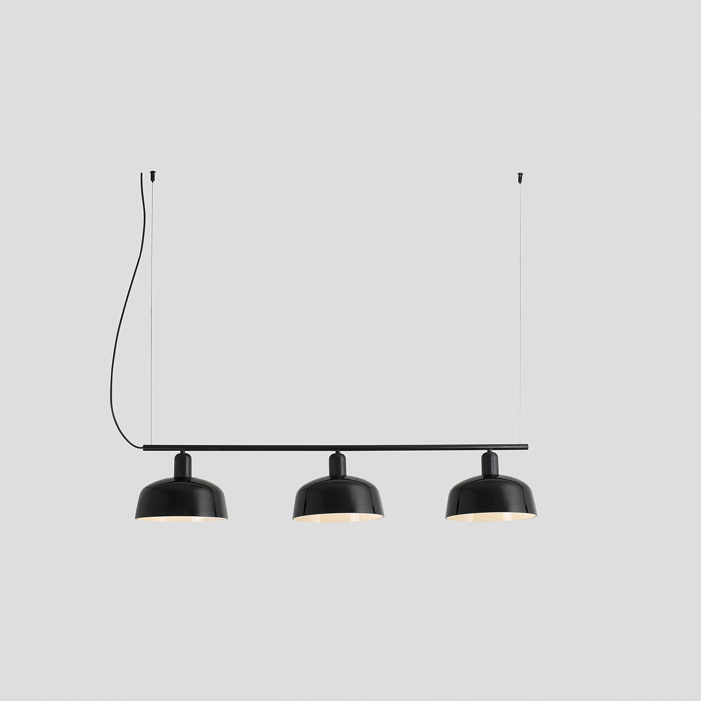 TATAWIN LINEAL M — это семейство светильников, разработанное Адольфо Абейоном. Форма тени осадков часть природных домов Татауина, города на юго-востоке Туниса. Этот черный линейный подвесной светильник имеет абажуры из черного глянцевого стекла.