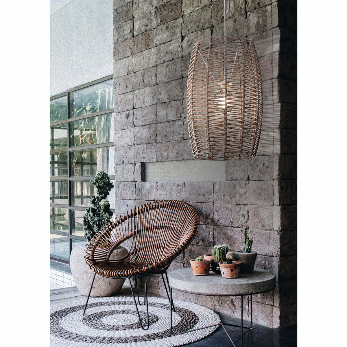 Этот дизайн, основанный на плетеном шнуре на металлической конструкции, имеет особенность быть сплетенным с новым стилем зигзага. Кроме того, с помощью этой модели мы хотим предложить возможность декорирования экстерьеров, для чего мы адаптировали их к агрессивным средам, усилив изоляцию от коррозии различных элементов и IP64.