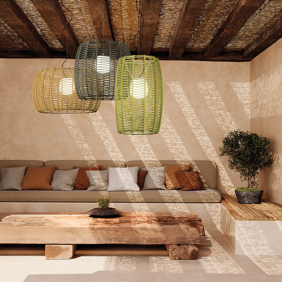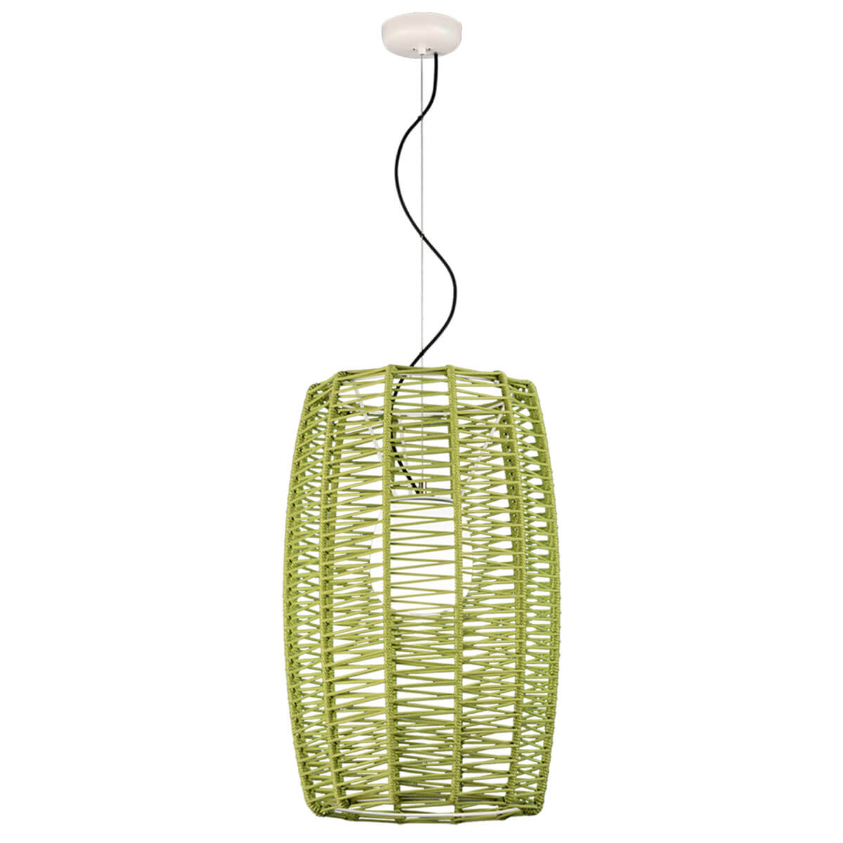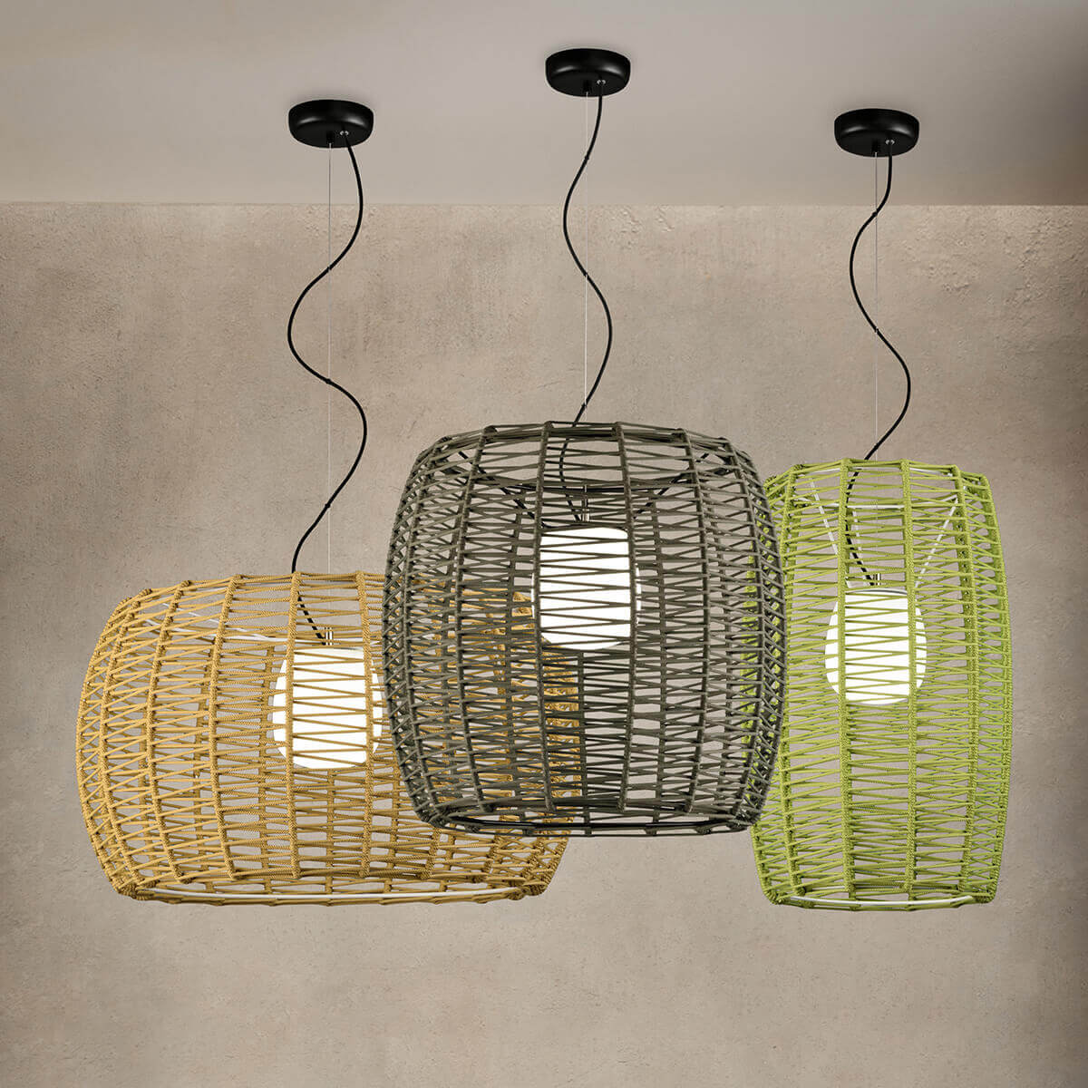 Подвесной светильник с абажуром Ø45 см из плетеного вручную шнура из переработанных пластиковых бутылок в оригинальной зигзагообразной технике. IP66 для использования на открытом воздухе.
