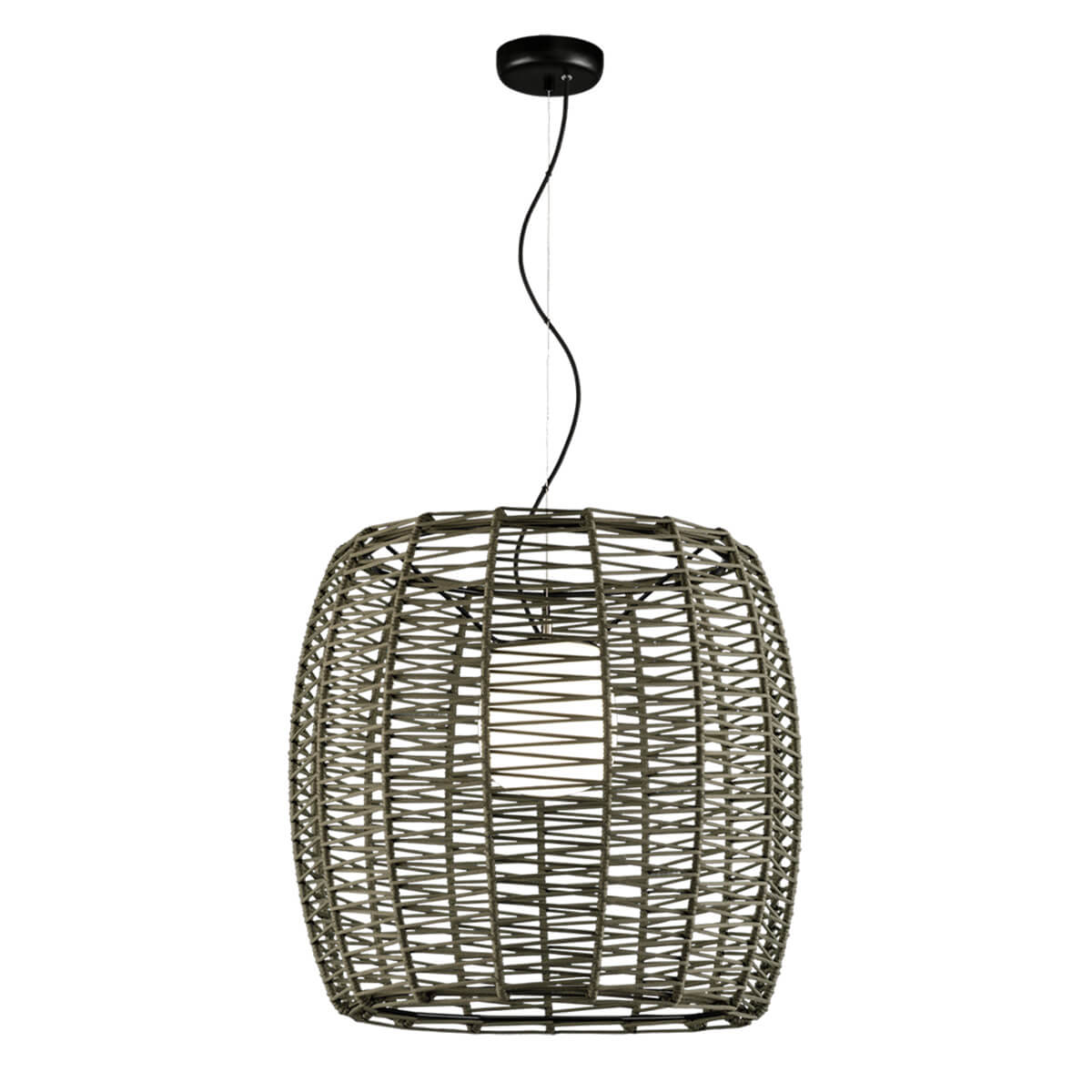 Подвесной светильник с абажуром Ø60 см из плетеного вручную шнура из переработанных пластиковых бутылок в оригинальной зигзагообразной технике. IP66 для использования на открытом воздухе.