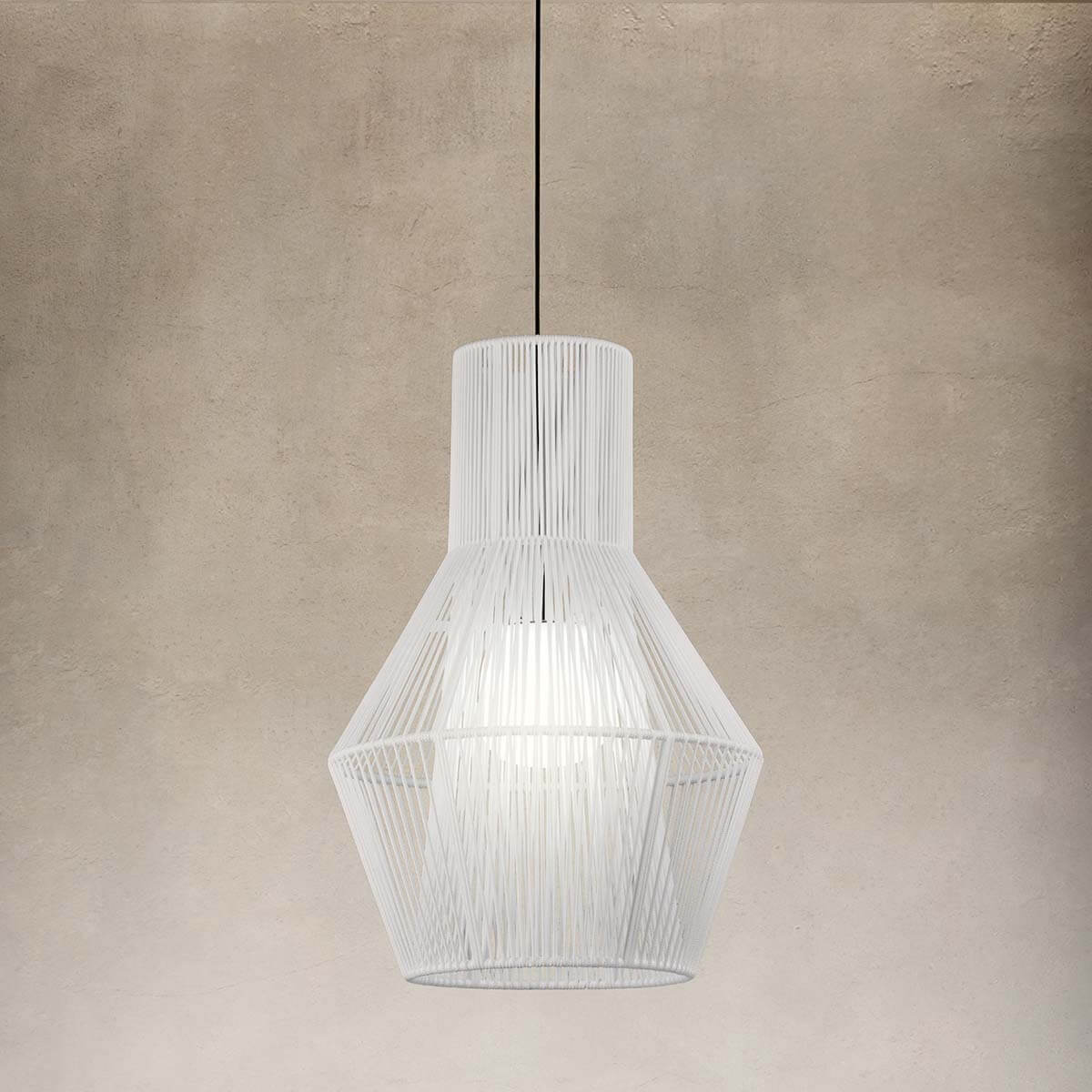 Подвесной светильник с абажуром диаметром 50 см из плетеного вручную шнура из переработанных пластиковых бутылок . IP66 для использования на открытом воздухе.