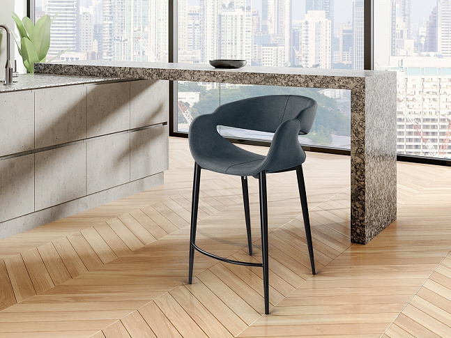 Полубарный стул Zunilda из черной синели и стали с матовой черной отделкой, высота сиденья 65 см. смотреть