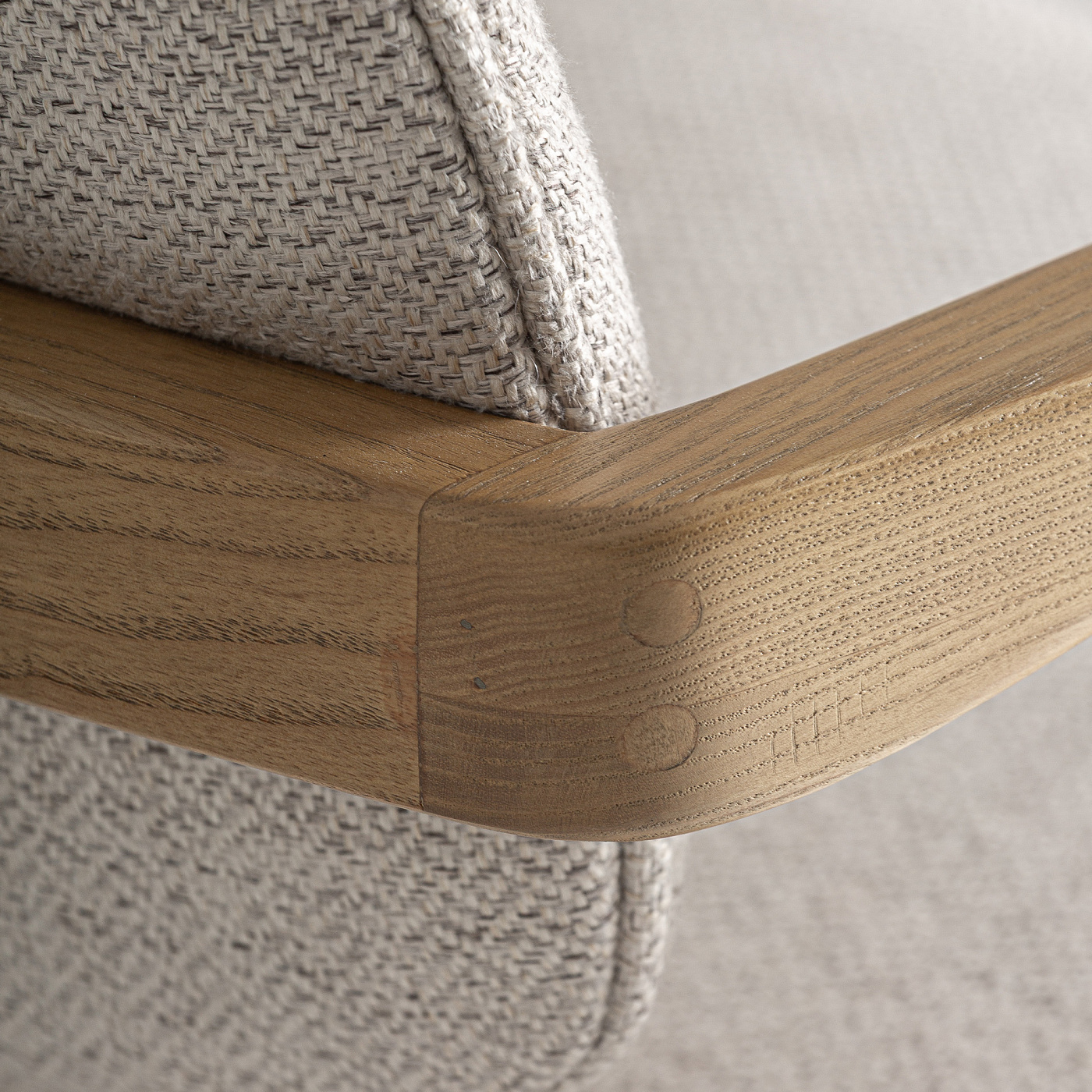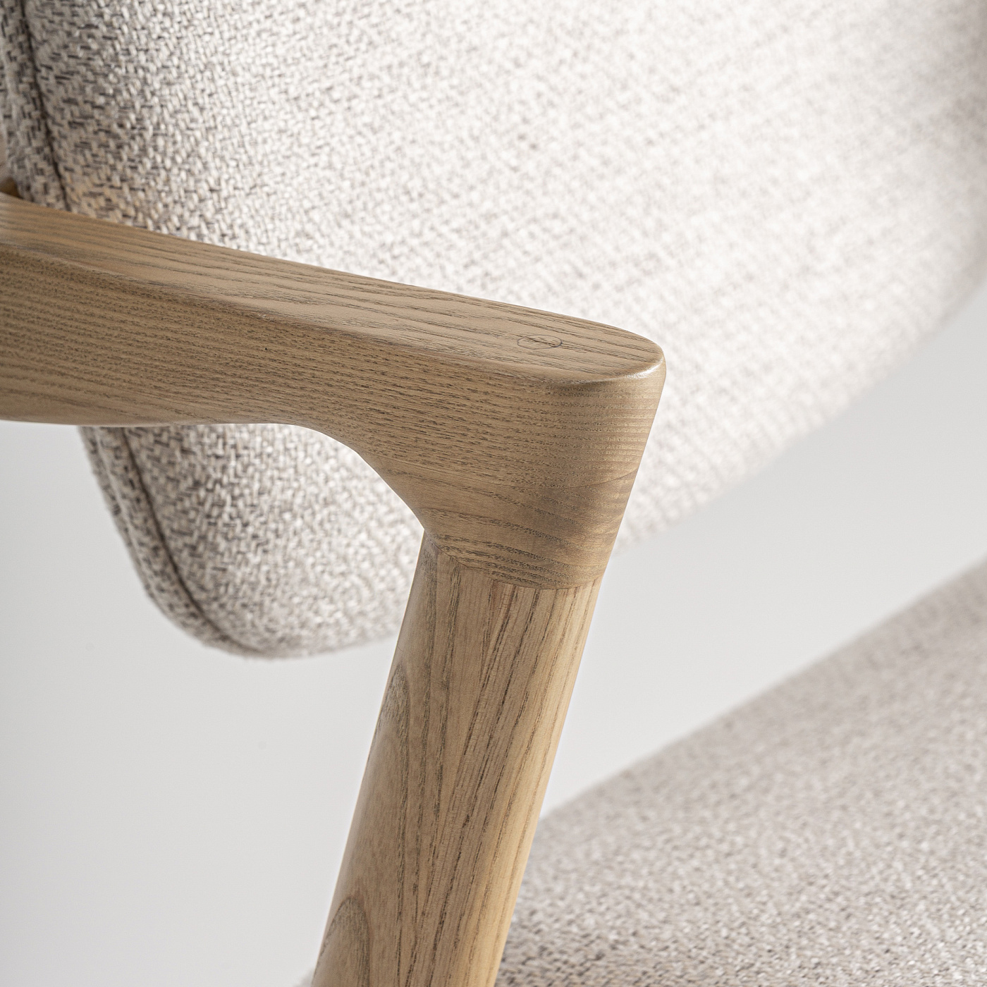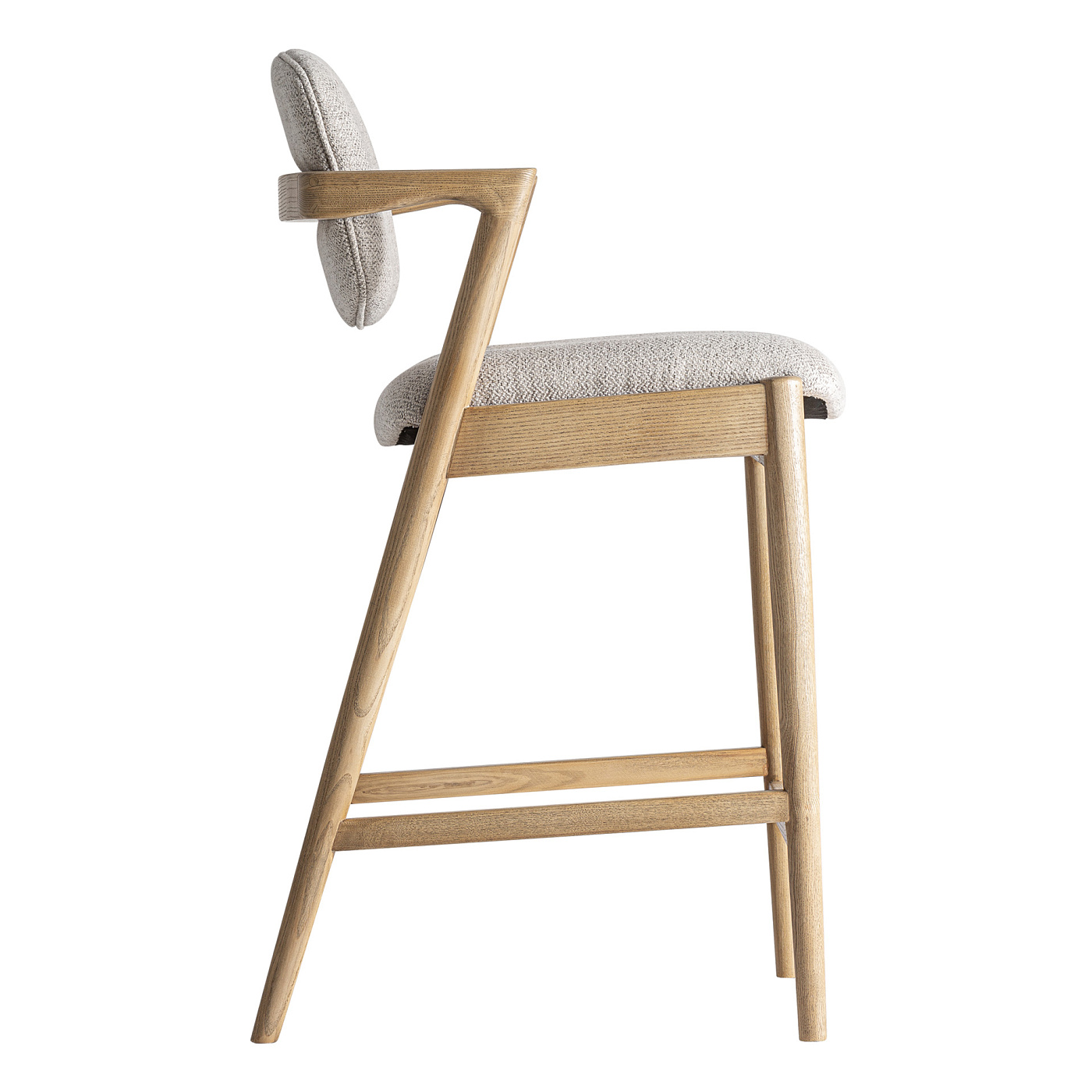 Табурет из коричневого ясеня в сочетании с коричневым полиэстером. Ширина: 54 см, Глубина: 57 см, Высота: 95 см