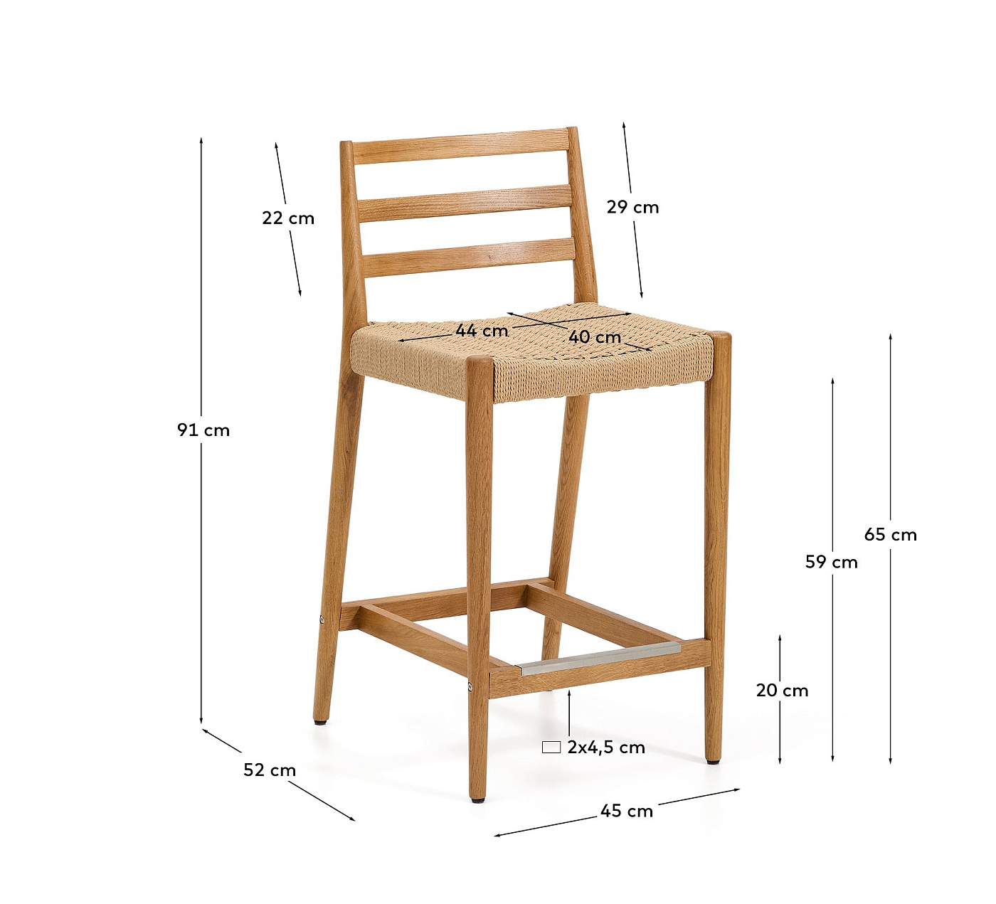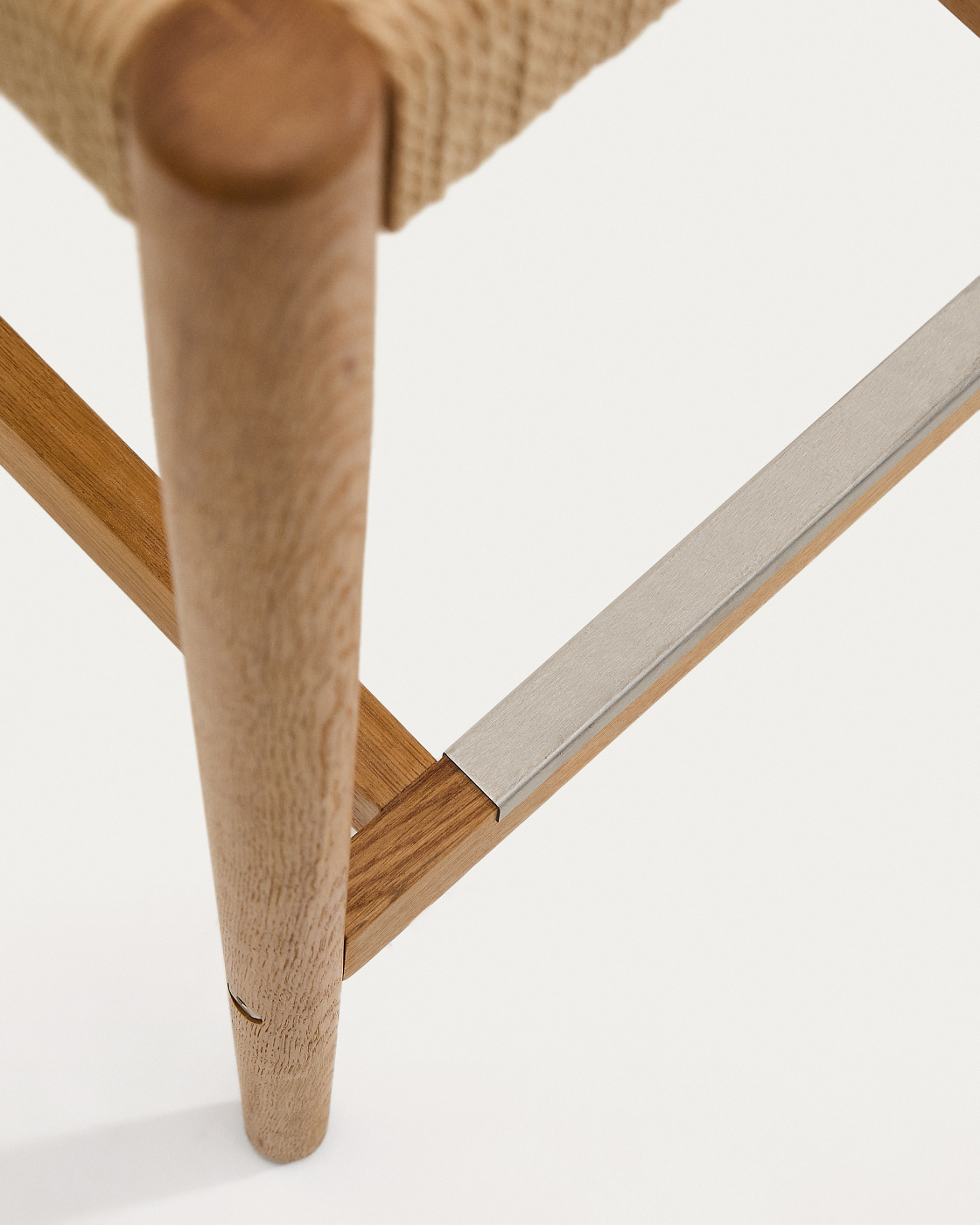 Полубарный стул Analy из массива дуба в натуральной отделке и веревочным сиденьем 65 см
