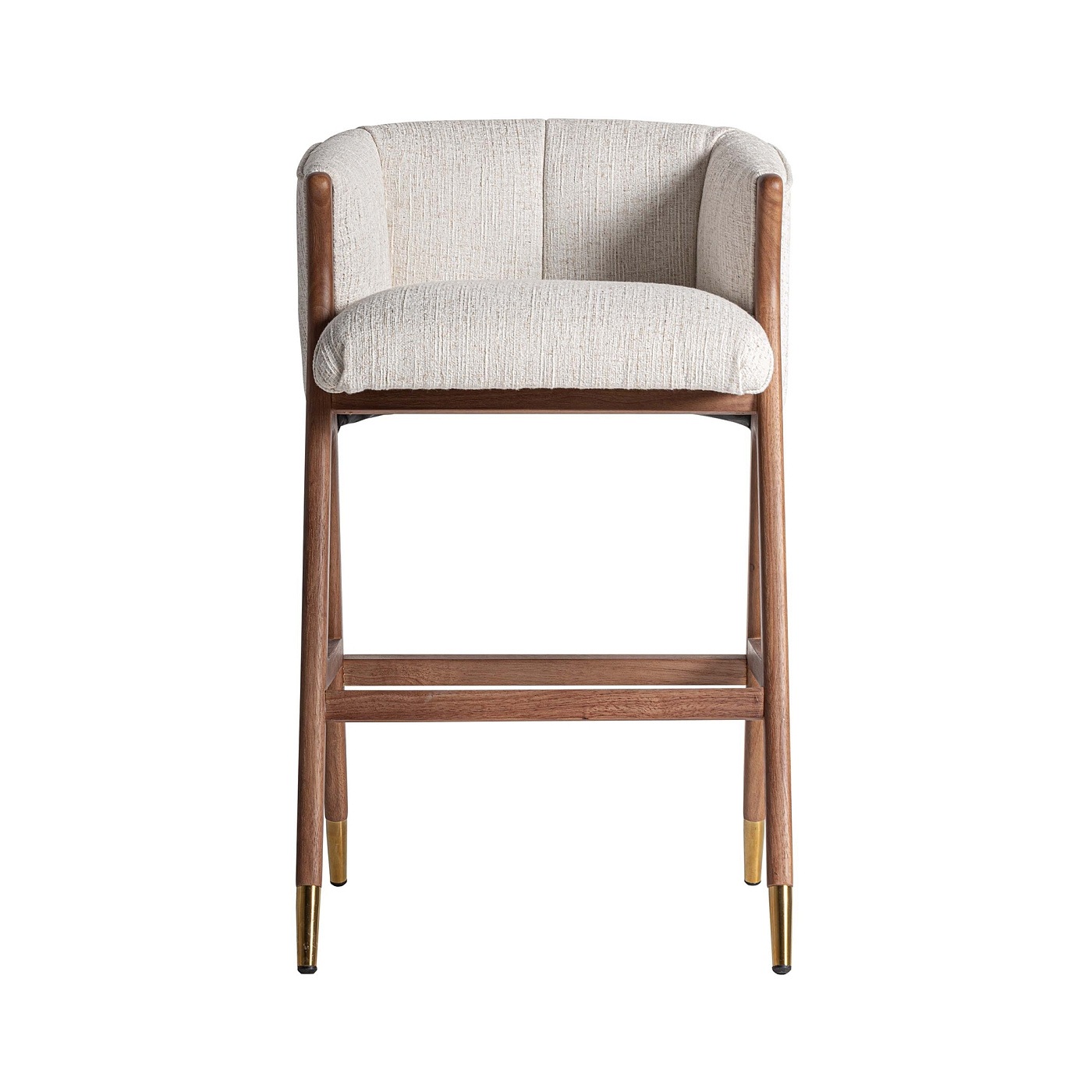 Табурет Douze, коричнево-бежевый, современный стиль. Изготовлен из каучукового дерева в сочетании со сталью и бархатом.