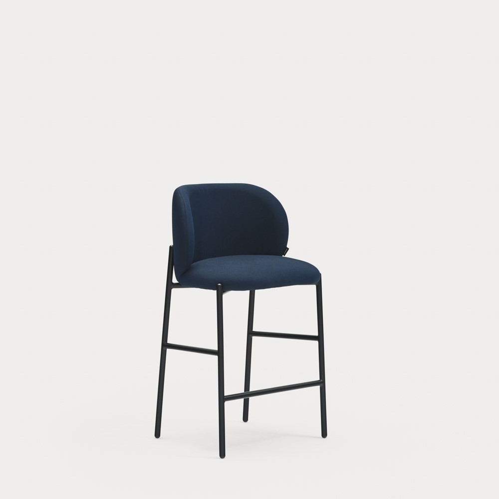 Полубарный стул Zunilda из черной синели и стали с матовой черной отделкой, высота сиденья 65 см.