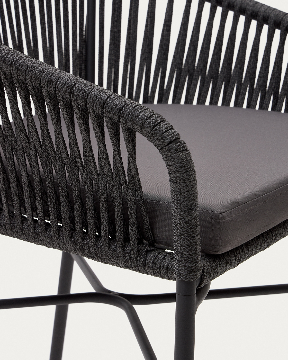 Веревочный полубарный стул Yanet черного цвета 65 см