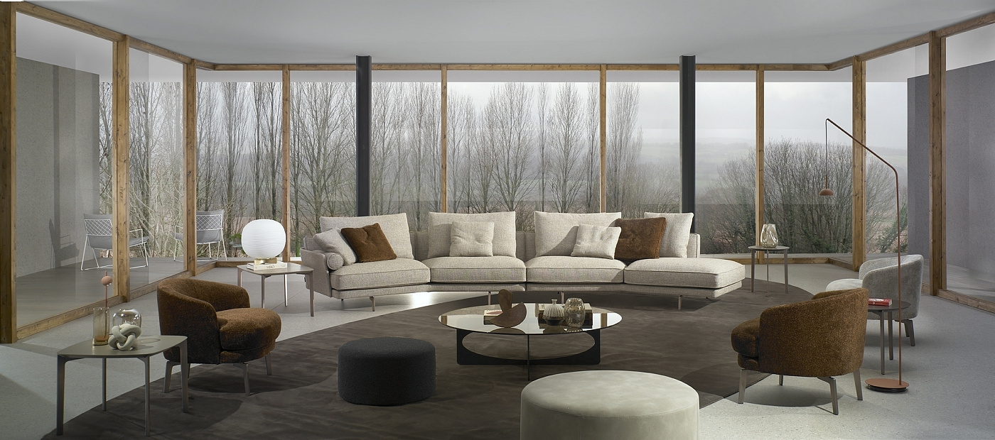 Современная модульная система сидений Bogart отличается повышенной элегантностью и величием благодаря идеально сбалансированным формам. Система словно парит на изящных ножках. Модульная система, одновременно гибкая и динамичная в своей утонченной обстановке, где большие подушки, казалось бы, не поддаются силе тяжести. Подушки для сидения и спинки украшены кантом, подчеркивающим их форму, в то время как в этой серии всегда присутствует глубокое ощущение комфорта. Эта система сидений состоит из множества характерных элементов, таких как шезлонг, и может быть размещена как отдельный геометрический элемент, так и в различных комбинациях для создания привлекательных решений.