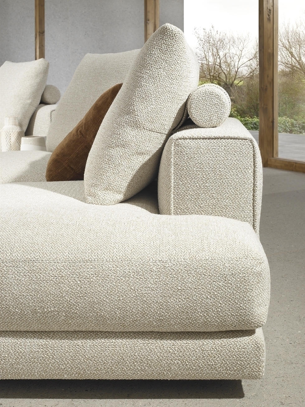 Модульный 2-местный диван Martina цвета экрю с правым шезлонгом 230 см