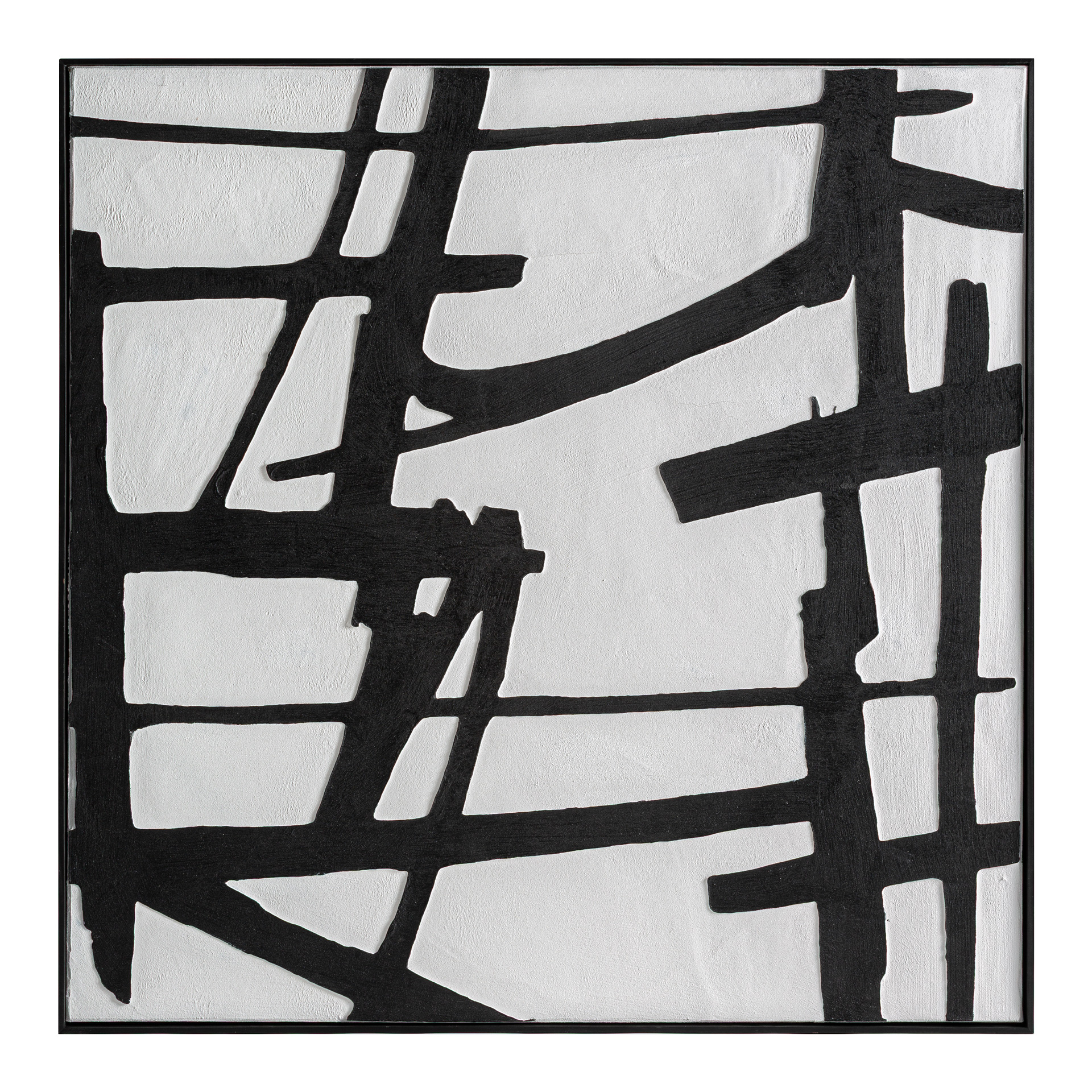 Картина, выполненная на белом холсте в сочетании с черной сосновой древесиной. Ширина: 120 см, Глубина: 5 см, Высота: 120 см
