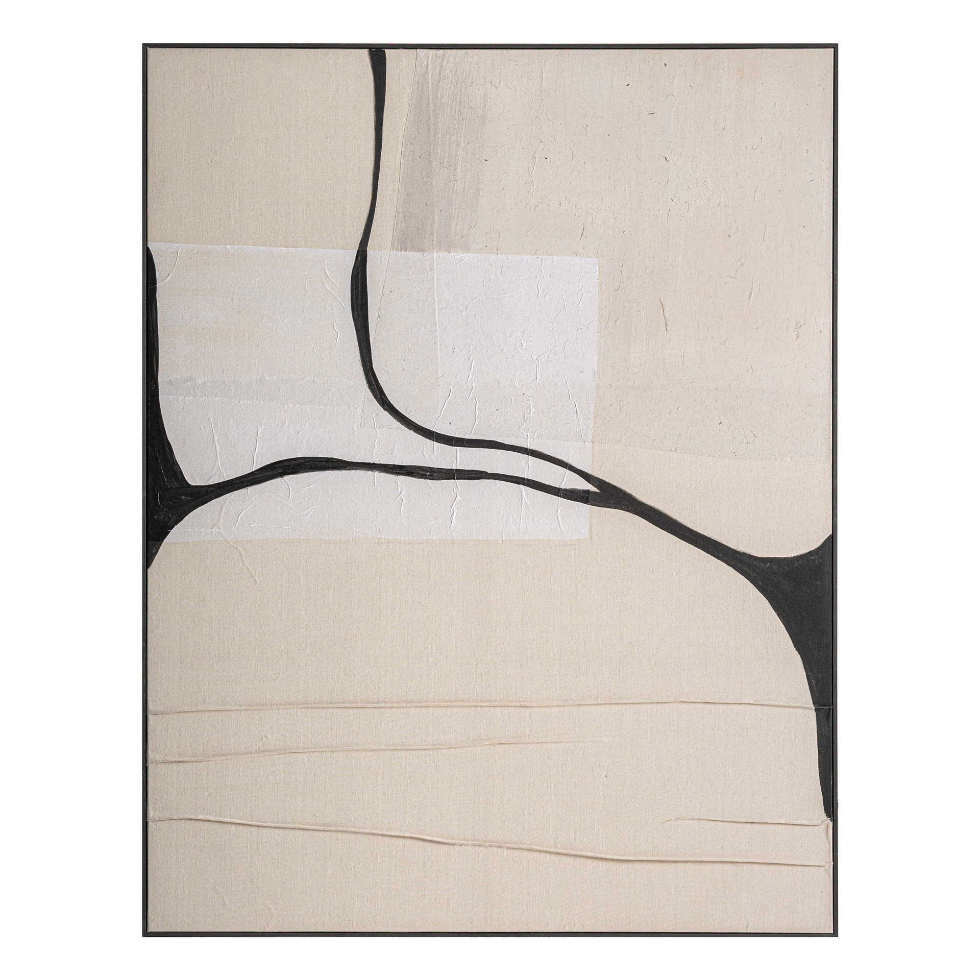 Картина, выполненная на бежевом холсте в сочетании с черной сосновой древесиной. Ширина: 140 см, Глубина: 5 см, Высота: 180 см