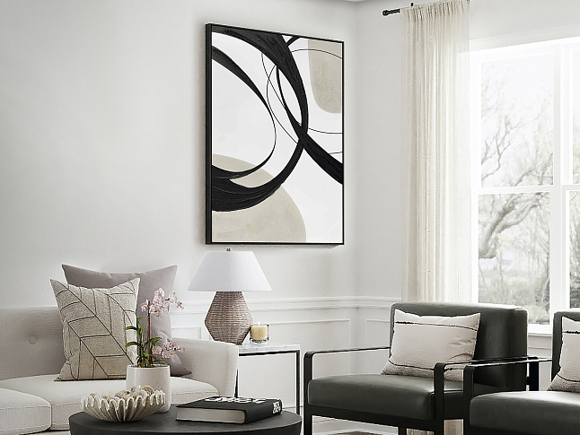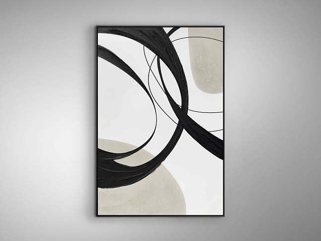 Картина выполнена акрилом, натянута на подрамник. Рама из черного полистирола. Готова повесить в горизонтальном или вертикальном положении.