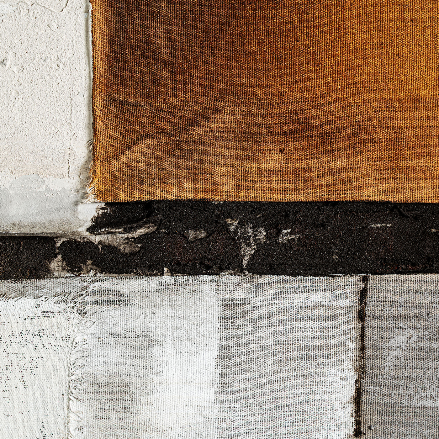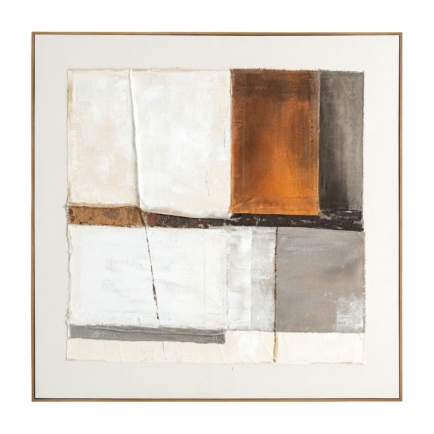Картина в современном стиле «Unai», выполненная на холсте в коричневых тонах в сочетании с коричневой сосновой древесиной. Ширина: 120 см, Глубина: 4 см, Высота: 120 см