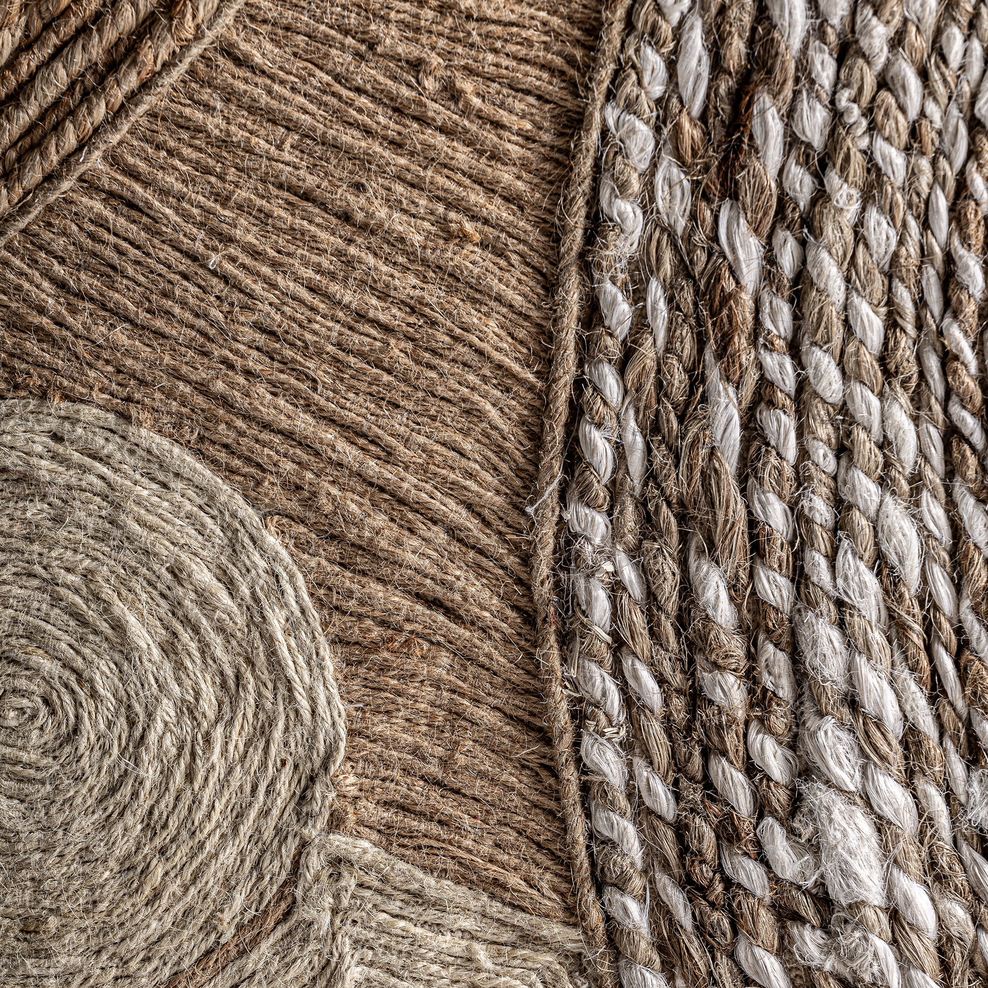 Картина «Zeus» в стиле бохо, выполненная из светло-коричневого мангового дерева в сочетании с бежевой пенькой и джутом нейтральных тонов.