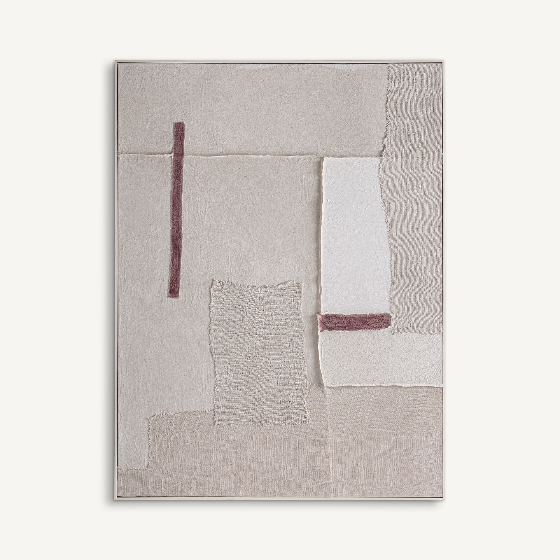 Картина «Зилия» в современном стиле, выполненная на холсте бежевого цвета в сочетании с коричневой сосновой древесиной. Ширина: 120 см, Глубина: 5 см, Высота: 160 см