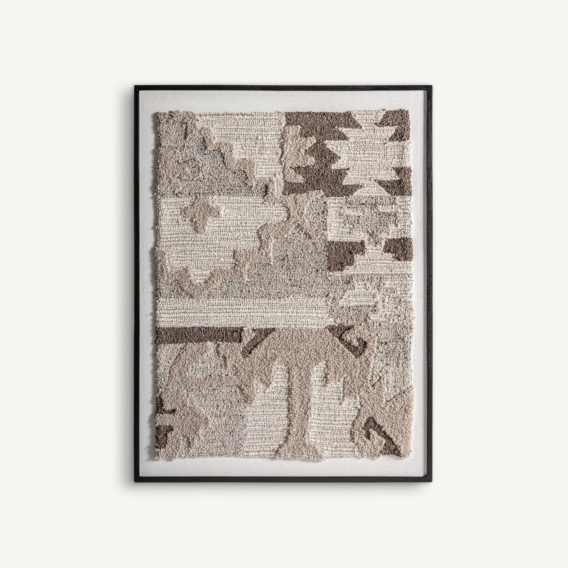 Картина Ивара в стиле бохо, выполненная из бежевого хлопка в сочетании с шерстью коричневых оттенков и манговым деревом коричневого цвета с натуральной отделкой.