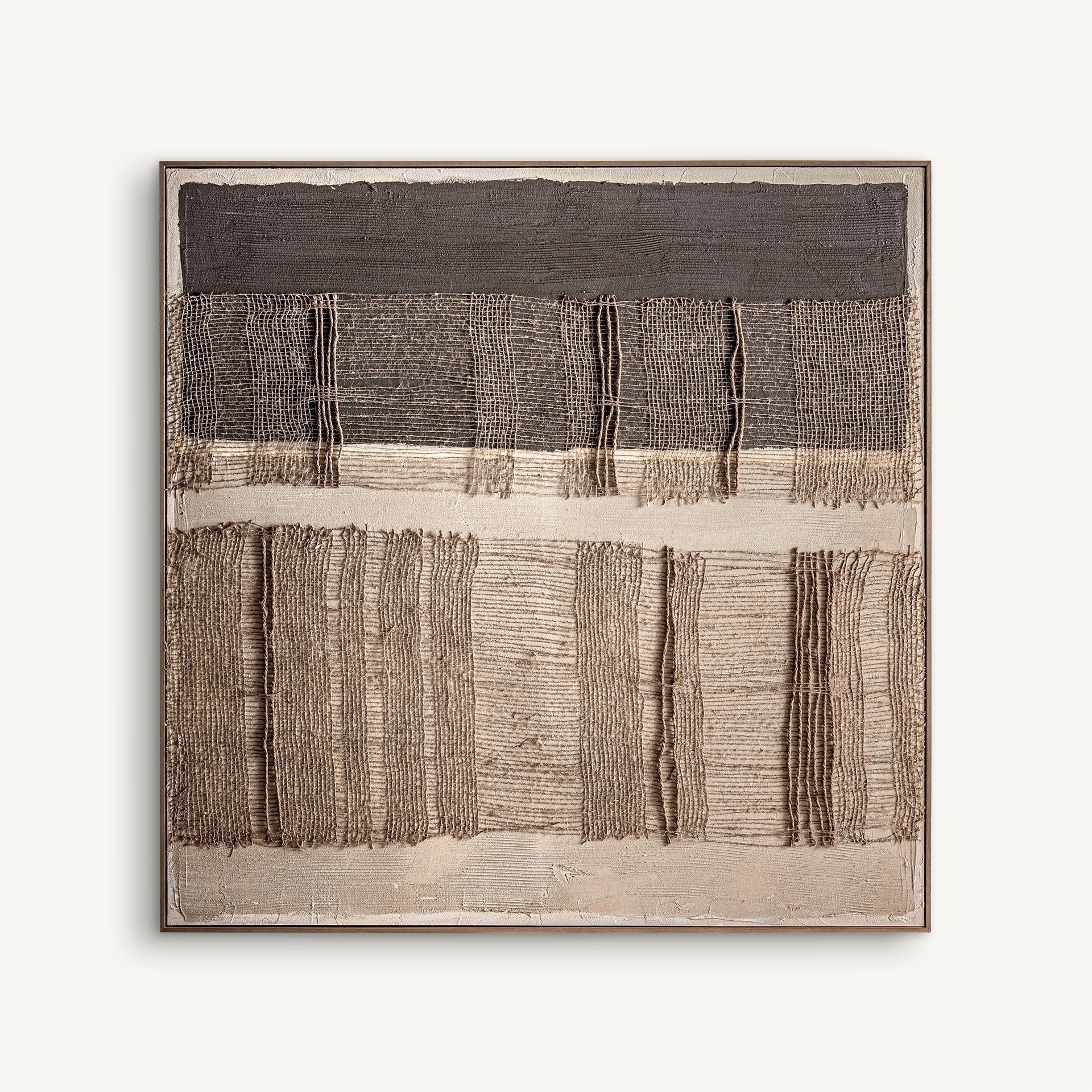 Холст Aslan в коричневых тонах с отделкой ручной работы выделяется своей натуральной текстурой и эстетикой бохо. VICAL воплотил эту работу в своём неповторимом стиле. Ширина: 120 см, Глубина: 5 см, Высота: 120 см