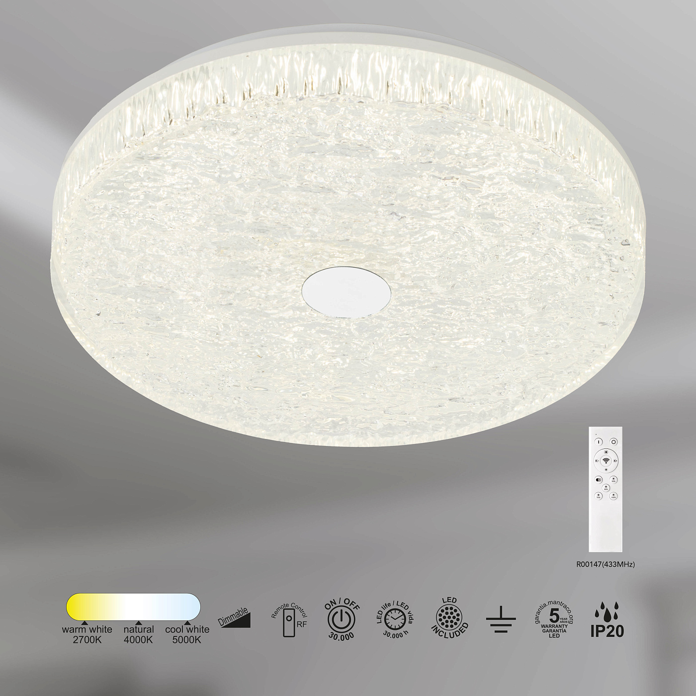 Коллекция потолочных светильников FROZEN: стиль и функциональность Откройте для себя коллекцию потолочных светильников «FROZE — сочетание лаконичного дизайна и передовых технологий. Светильники идеально дополнят любой интерьер, будь то прихожая, гостиная или офис. Светильники отличаются: • универсальным дизайном (круглая форма, белоснежный цвет); • регулируемой цветовой температурой (2700–5000 K) — от тёплого до холодного света; • высокой энергоэффективностью; • удобством управления (пульт ДУ в комплекте); • прочным корпусом из металла и акрила; • классом защиты IP20; • высоким индексом цветопередачи (CRI ? 80) — цвета предметов не искажаются.