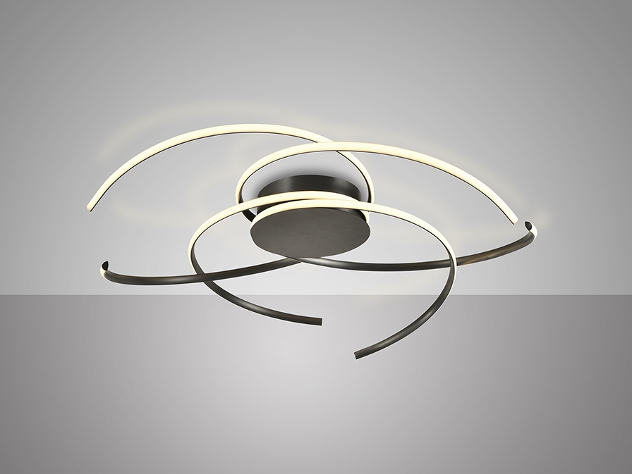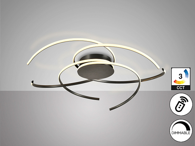 Потолочный светильник из алюминия и стали, матово-черного цвета. Рассеиватель из опалового силикона. Светодиодное освещение мощностью 70 Вт, цветовая температура: 2700–5000 К. 4800 лм. РЕГУЛИРУЕМАЯ ЯРКОСТЬ. В комплект входит пульт дистанционного управления. · Эта лампа поставляется с GRAVITY TOGGLES для улучшения фиксации на потолке. Этот продукт использует диммер и пульт дистанционного управления для регулировки интенсивности и цветовой температуры...доступна версия 110 В.