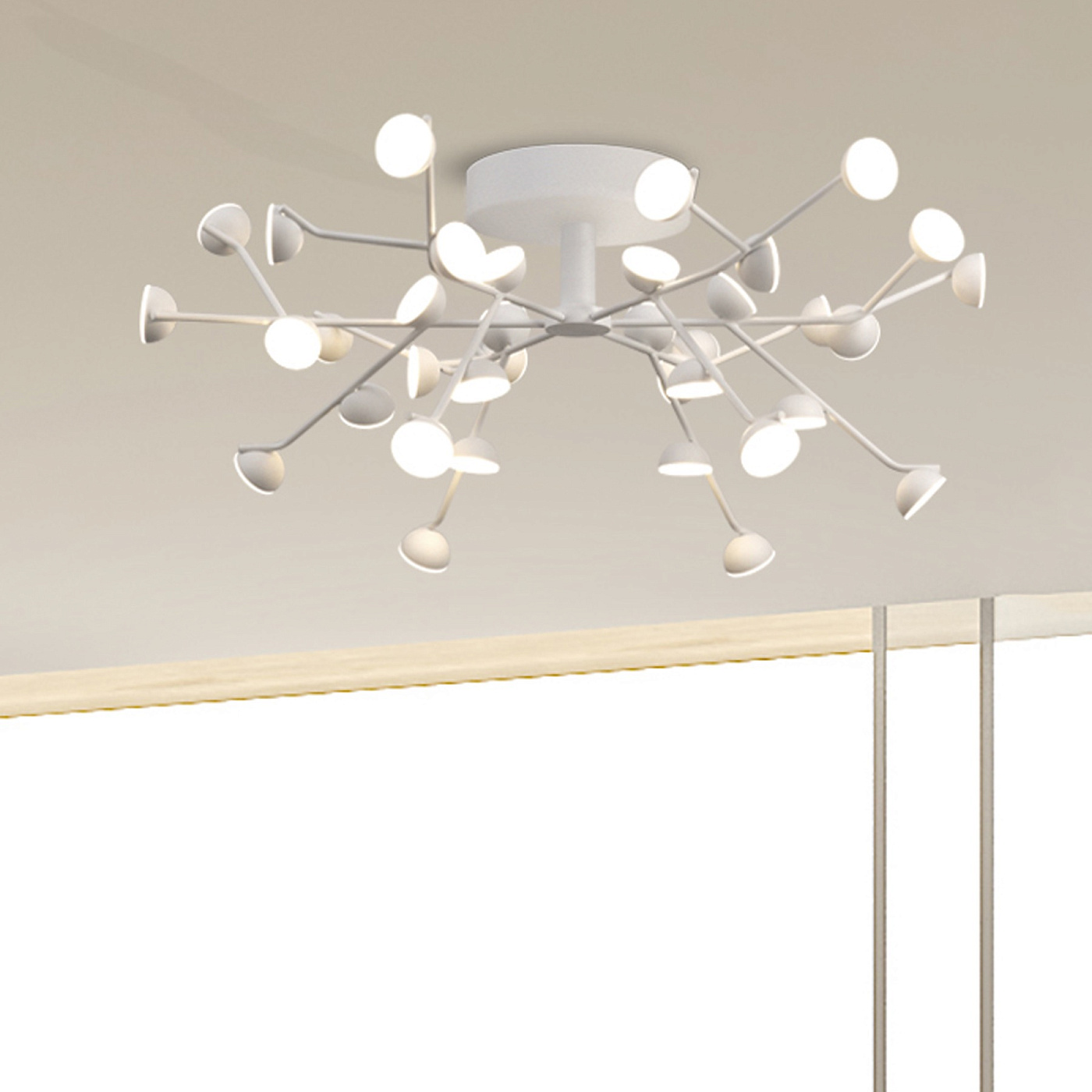 Светильник Adn, выполненный из металла, с анархическим распределением точек освещения, соответствует структуре ДНК, с художественным и визуальным балансом. В качестве основной характеристики, его рамы, декорированные белой эпоксидной смолой, дают возможность замены светодиодных точек, если это необходимо.