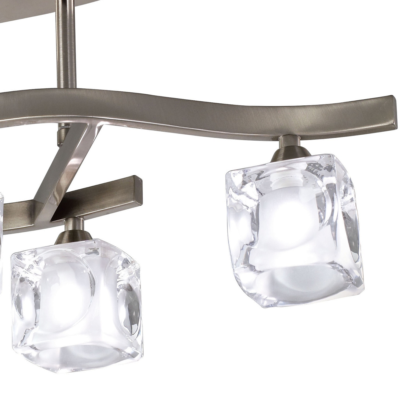 Стильный потолочный светильник Cuadrax, выполненный из металла в матовой или блестящей хромированной отделке или в бронзовой отделке с плафонами из прозрачного или оптического стекла на выбор, придаст яркость и блеск любому помещению. Галогенные лампы Osram входят в комплект.