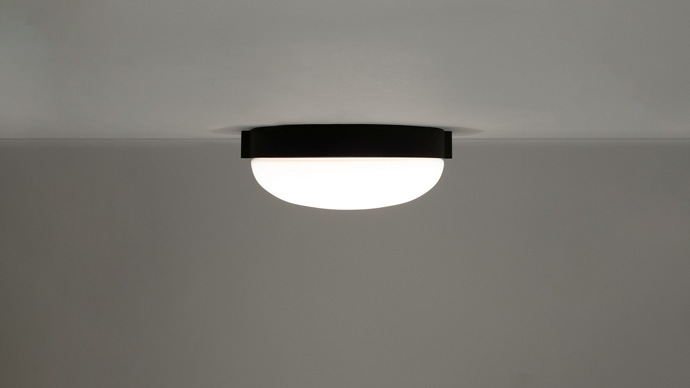 Beaded C — это потолочный светильник небольшого размера, изготовленный из алюминия и выдувного стекла. Его рассеиватель доступен в опалово-белом или дымчато-сером цвете; в последнем варианте используется плоский внутренний рассеиватель, который не позволяет увидеть источник света. Центральное алюминиевое кольцо имеет текстурированную матовую чёрную отделку.