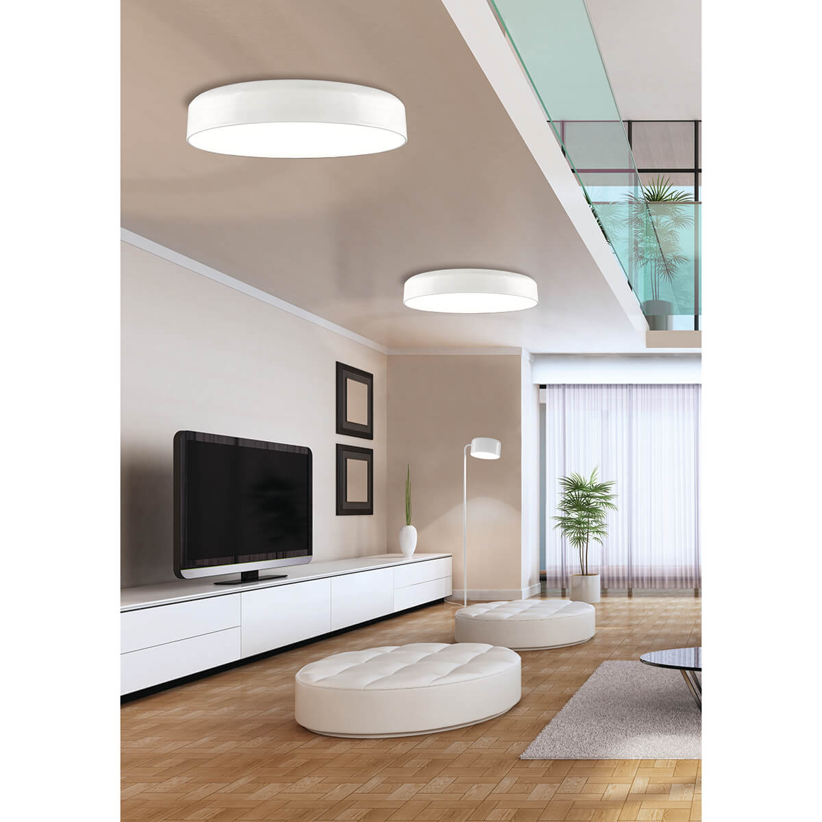 Потолочный светильник Ø76 см с металлическим абажуром, доступен в различных вариантах отделки, с рассеивателем из ПММА.