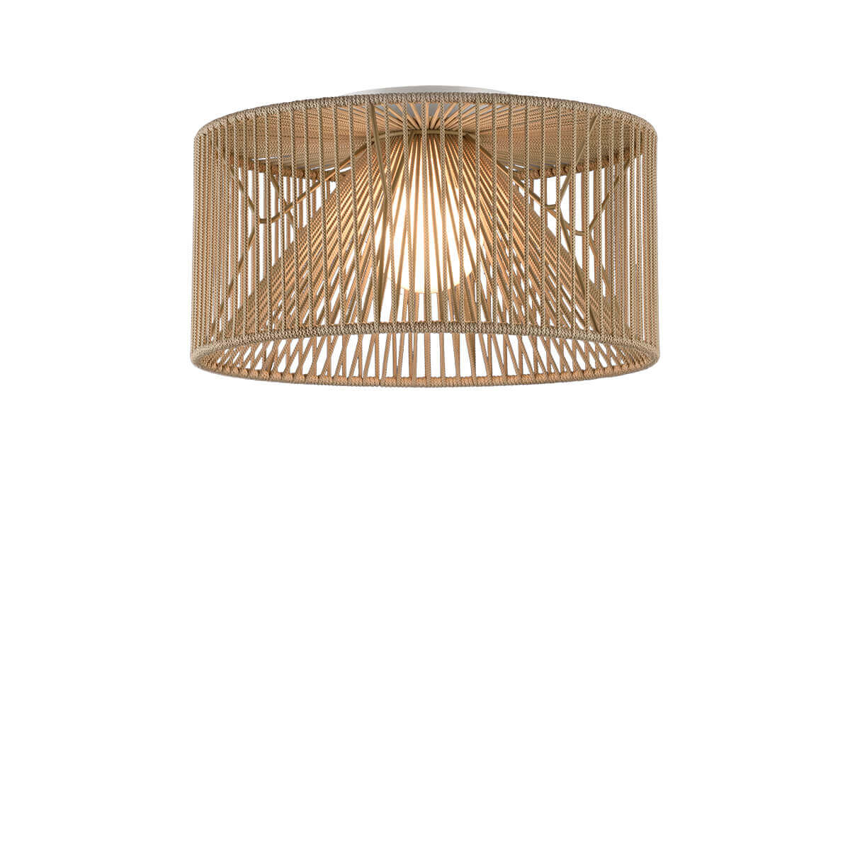 Устойчивый потолочный светильник с абажуром диаметром 50 см из плетеного шнура ручной работы, изготовленного из переработанных пластиковых бутылок , доступных в широкой цветовой гамме. - Лампы НЕ включены (1 x светодиод E27). - Метры шнура: 75 метров.