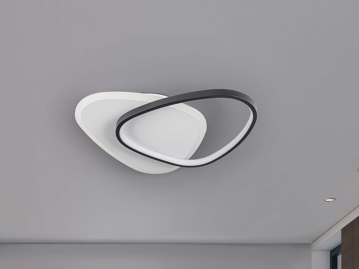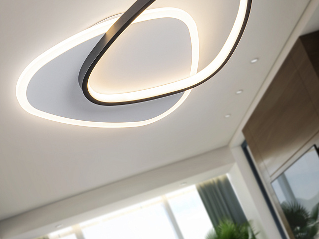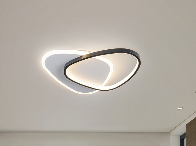 Потолочный светильник или бра из металла с матовой черно-белой отделкой. Опаловый акриловый рассеиватель. 28 Вт, 3024 лм, 3000 К · Эта лампа поставляется с ГРАВИТАЦИОННЫМИ ПЕРЕКЛЮЧАТЕЛЯМИ для улучшения крепления к потолку.