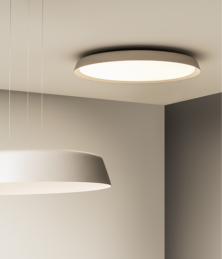 Потолочные светильники Bigger обеспечивают световой эффект, напоминающий естественный свет, заливая окружающее пространство рассеянным и приятным нисходящим светом. Поверхностный светильник доступен в двух размерах, которые можно адаптировать к любому размеру помещения или, при желании, создавать композиции из нескольких светильников. Потолочный светильник Bigger идеально подходит для особенно высоких и/или темных потолков.
