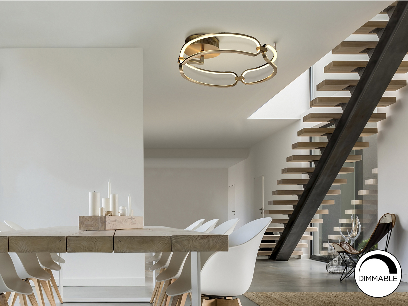 Потолочный светильник LED маленького размера, из алюминия с матовым полированным золотистым покрытием. Силиконовые рассеиватели опалового цвета, 37W LED, 3330 Lm, 3000 K. Диммируемый.