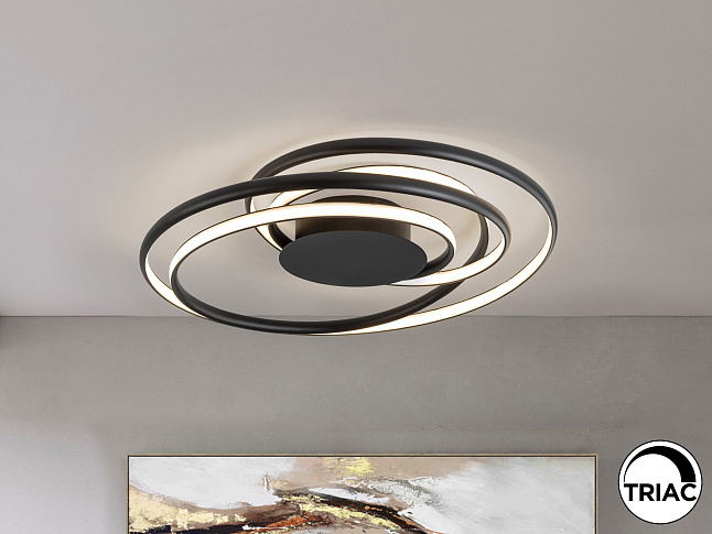 Потолочный светильник из металла и алюминия с матовой черной отделкой, подвергнутой пескоструйной обработке. Опаловый силиконовый рассеиватель. Светодиоды мощностью 75 Вт.3252 лм. 3000 К. С РЕГУЛИРОВКОЙ. В этом продукте используется светодиодный драйвер симисторного типа и регулировка яркости 0–10 В. Его можно затемнить с помощью светодиодного настенного диммера с этими функциями. · Эта лампа поставляется с ГРАВИТАЦИОННЫМИ ПЕРЕКЛЮЧАТЕЛЯМИ для улучшения крепления к потолку.