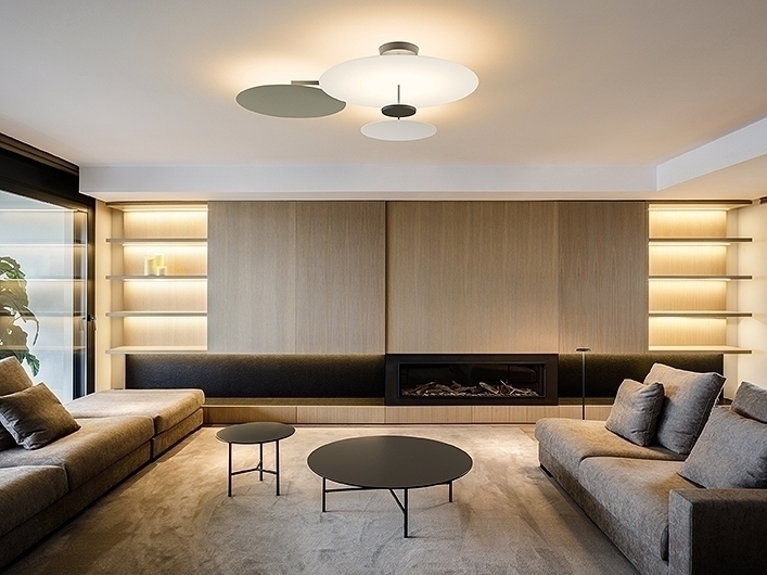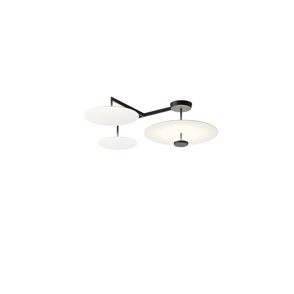 Flat представляет собой потолочный светильник, состоящий из горизонтальных дисков на разной высоте, создающих плоскости отраженного света. Потолочный светильник Flat имеет сильное графическое качество, сочетая в себе структуру и функциональность.
