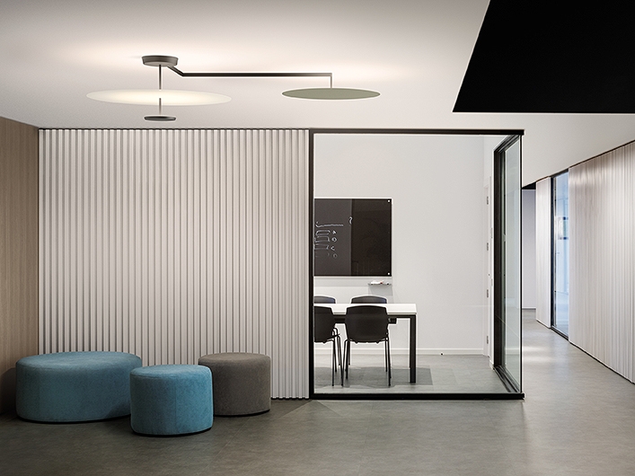 Flat представляет собой потолочный светильник, состоящий из горизонтальных дисков на разной высоте, создающих плоскости отраженного света. Потолочный светильник Flat имеет сильное графическое качество, сочетая в себе структуру и функциональность.