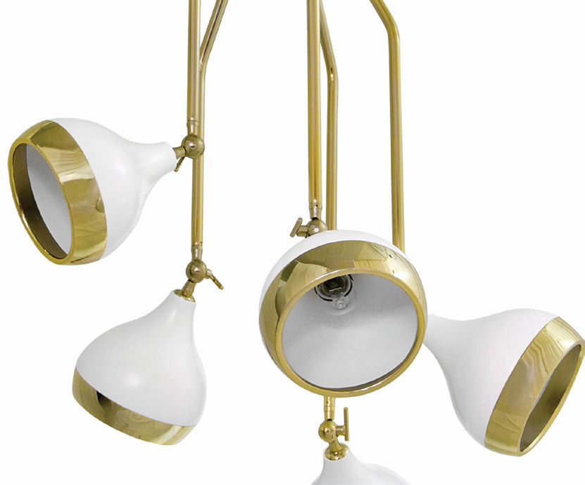 Потолочный светильник (люстра) Hanna от компании Delightfull (Португалия), созданный специально для гостиных комнат, отличается ярким винтажным стилем. Его основание изготовлено из меди и покрыто позолотой. Алюминиевые плафоны, изготовленные при помощи стариной техники давильной обработки металла, крепятся к медным направляющим при помощи шарнира, который позволяет изменять угол их наклона. Конструкция люстры Hanna предусматривает возможность изменения количества направляющих и плафонов (от 3 до 5). В дополнение к люстре на нашем сайте Вы также можете найти напольный светильник (торшер) Hanna. Люстра Hanna, как и другие светильники Delightfull, собирается вручную из материалов и комплектующих самого высокого качества и доступна в разных цветах и вариантах отделки.