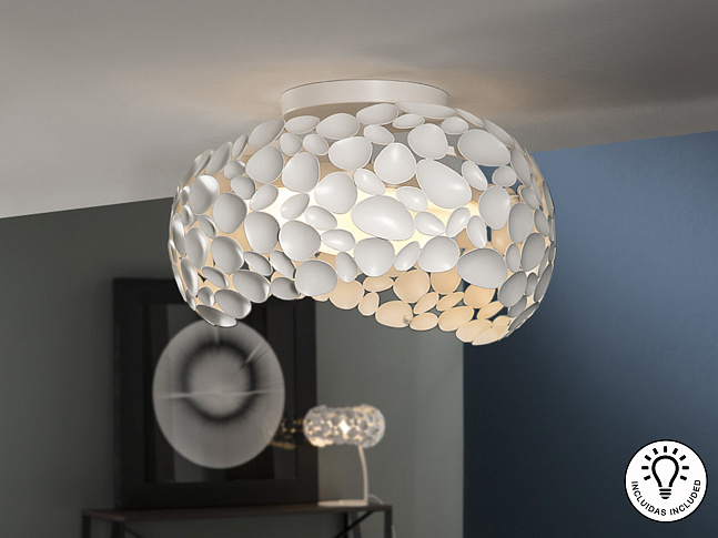 Потолочный светильник с 5 лампами, из металла с матовым белым лаковым покрытием, акриловый рассеиватель внутри. Включает 5 светодиодов G9 мощностью 6 Вт.
