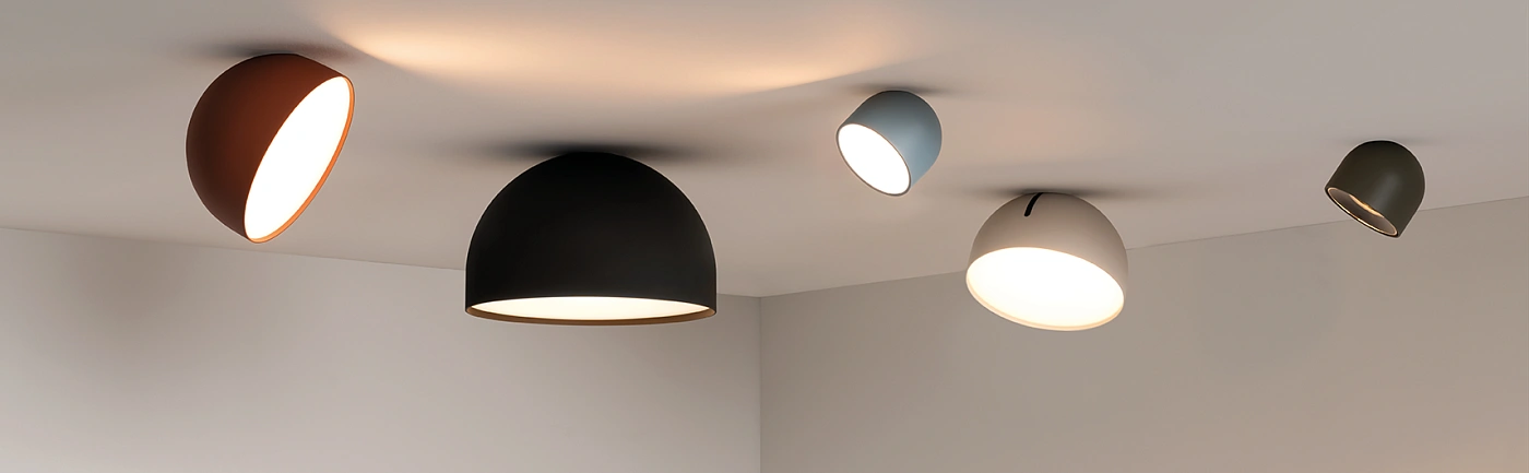 Plusminus Solo включает в себя линейку полукруглых потолочных светильников поверхностного монтажа. Сочетая акцентные точечные светильники с плоскими направленными рассеивателями, коллекция обеспечивает комфортное общее освещение, а также более сфокусированное.