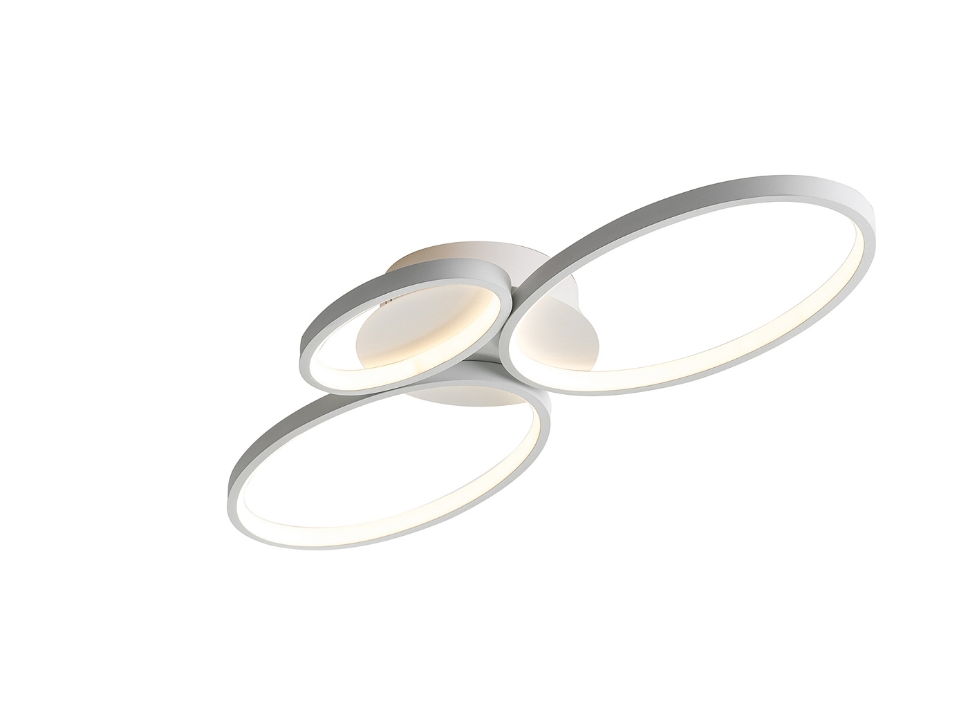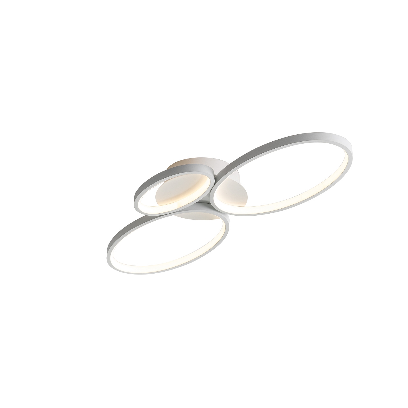 Потолочный светильник LED из металла и алюминия с белым фактурным покрытием, 3 овала с рассеивателями из силикона, 36W LED, 1850 Lm, 3000 K.