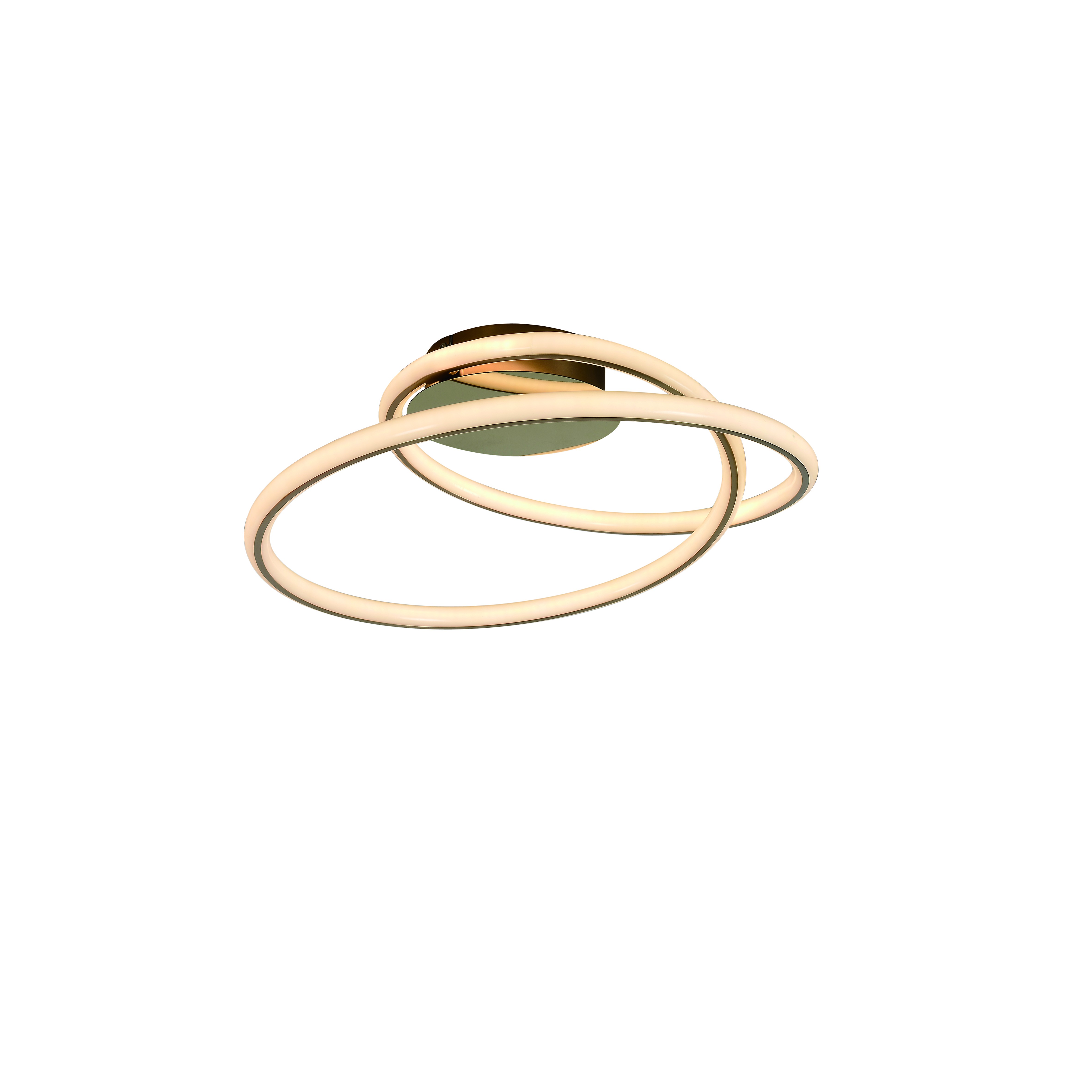 Потолочный светильник из металла и алюминия, покрытие "блестящее золото" и "матовое золото". Рассеиватель трубчатый из силикона опалового цвета. 44W LED, 3520 Lm, 3000K.