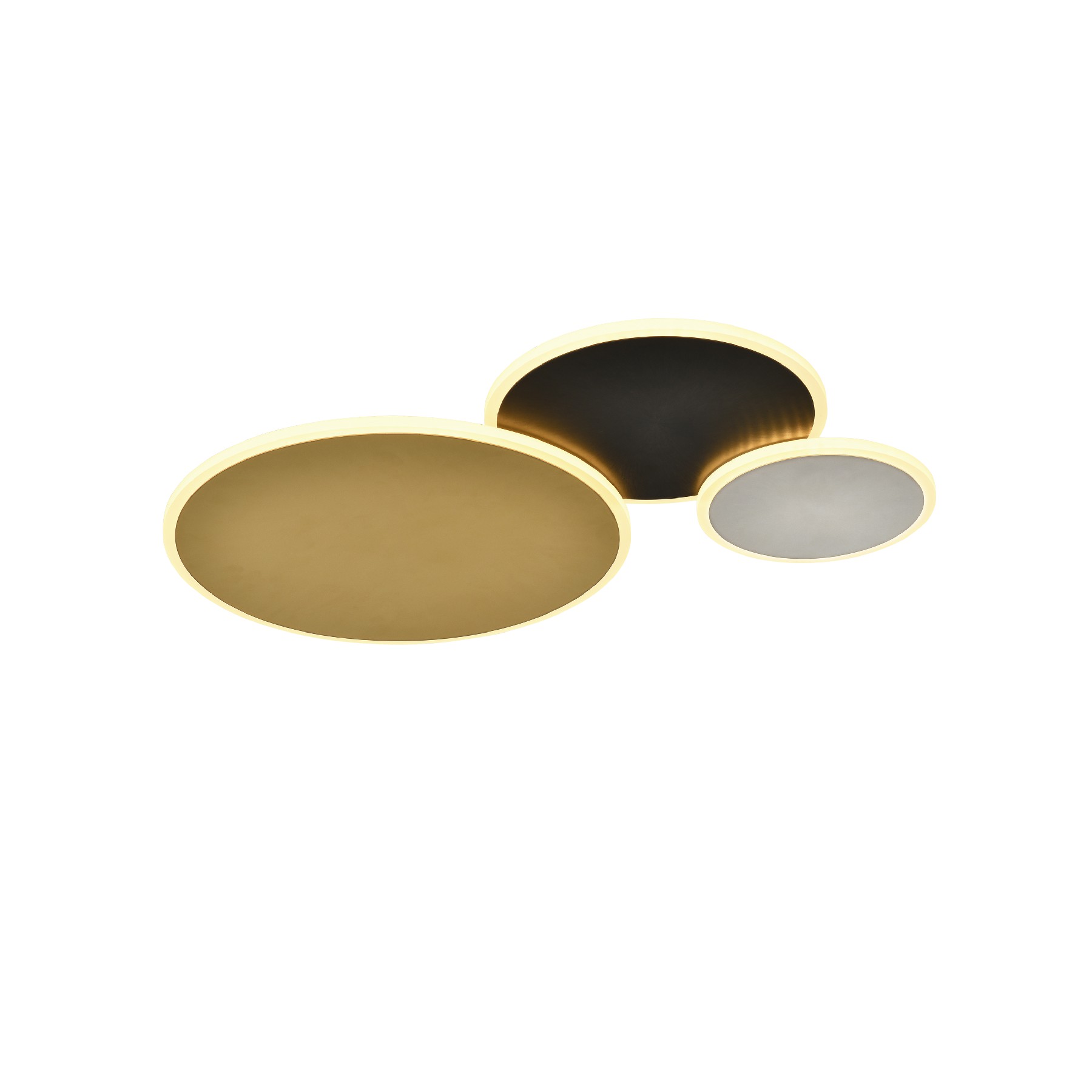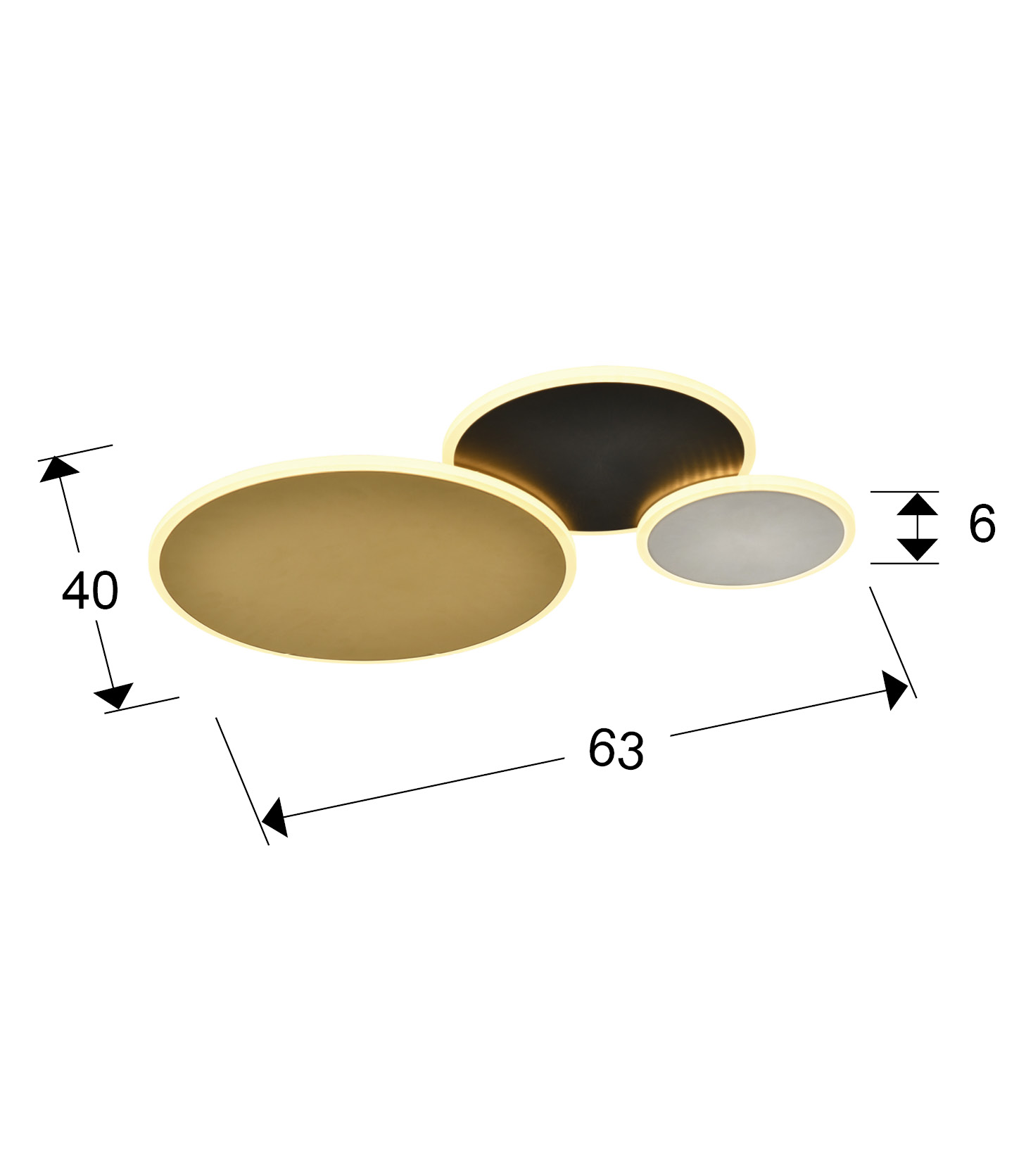 Потолочный светильник из металла и алюминия с отделкой золотистого, белого и черного матового цвета. Опаловый акриловый рассеиватель. 32 Вт, 1900 лм, 3000 К. ДИММИРУЕМАЯ. В этом продукте используется светодиодный драйвер симисторного типа и регулировка яркости 0–10 В. Его можно затемнить с помощью светодиодного настенного диммера с этими функциями. · Эта лампа поставляется с ГРАВИТАЦИОННЫМИ ПЕРЕКЛЮЧАТЕЛЯМИ для улучшения крепления к потолку.
