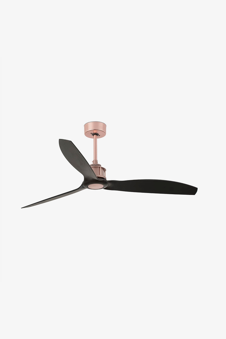 JUST FAN - это сущность индустриального стиля и современного поклонника. Стилизованный металлический каркас создает поразительный, разрушающий форму дизайн. Этот современный потолочный вентилятор идеально подходит для вентиляции помещений площадью от 13 м2 до 17,6 м2. Медная версия с черными лопастями - это новый вариант для современных и элегантных помещений. Активируется дистанционным управлением. Этот потолочный вентилятор с двигателем постоянного тока с низким потреблением имеет 6 регулируемых скоростей с потреблением 4-6-9-13-22-32 Вт и 51-77-103-129-155-185 оборотов в минуту в зависимости от скорости. Этот вентилятор поставляется с реверсивной функцией лето-зима, поэтому вы также можете использовать его зимой, повышая эффективность вашей системы отопления. Поток воздуха: 145,7 м3, мин / 5145 куб.